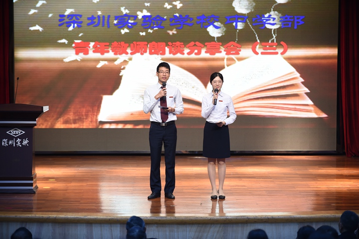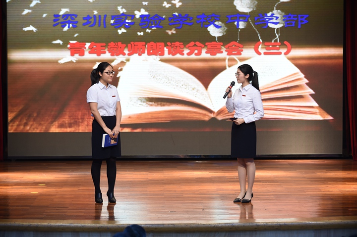 2018年11月30日下午4:10,深圳实验学校中学部在五楼小礼堂举办了第三期青年教师朗读分享会,七位青年教师针对《安娜·卡列尼娜》和《余秋雨散文》两本书进行了朗读与读后分享。主持殷秀楠、杨韵莹两位老师。