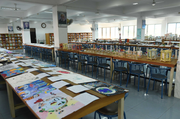 中学部第30届科技节“小创客”活动如期开展。3月29日—4月2日,整整一周,我们展出学生科技“小创客”制作共273件。所有作品都是同学们利用节假日及学习之余,用环保材料,简单工具,设计制作而成,有发光发声类的电子制作,有科学设想、创意设计方案,有科技小发明,还有科学幻想绘画,科技活动方案等等。