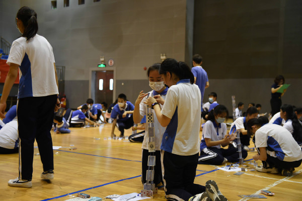 2021年4月2日下午,深圳实验学校中学部第26届科技节头脑奥林匹克运动会如期举办。本届头奥赛包括四个比赛项目:“飞向天空”、“纸桥承重”、“纸牌高塔”和“大力神”。在教务处和科学组老师们的精心策划下,在各组裁判(含师生)的精心组织下,初一、初二两个年级的学生热烈而有序地开展了各项比赛。