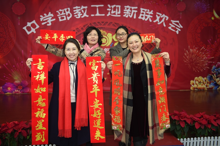 美好的时光太短暂,晚会在大家的欢声笑语中完美落幕。晚会传递了对教职工的新年祝福,展现了中学部轻松、快乐、和谐和融洽的良好工作氛围。2019年,愿每一位教职工如诗如歌,以蓬勃朝气迎接光辉灿烂的生活。愿中学部蒸蒸日上,实验之路春常在!我们将携手并肩,用团结,奋斗共同谱写实验新的篇章!(文/初一年级李佳 图/靳军强)