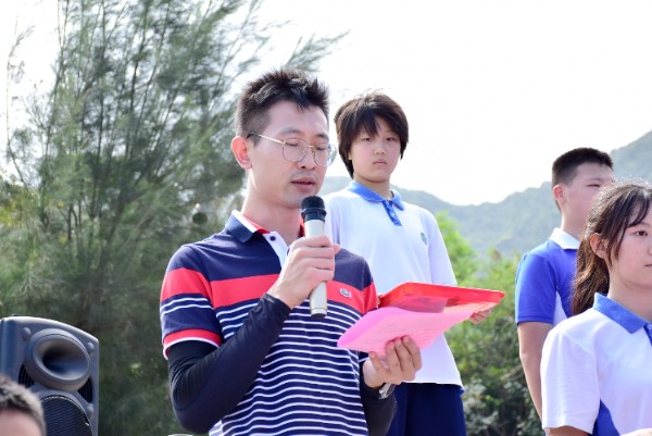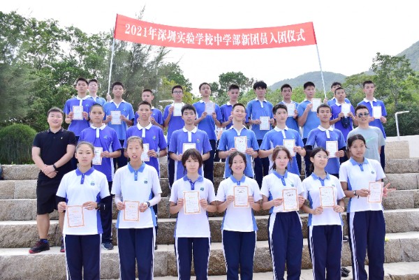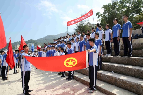 午间12时许,完成半程15公里的徒步,到达杨梅坑海滨,这里将举行隆重的新团员入团仪式。在碧海蓝天和鲜艳的团旗见证下,初三年级一批新团员佩戴团徽,宣誓加入中国共产主义青年团,立志为共产主义事业而奋斗。一批优秀义工、学生工作者也在此受到表彰。