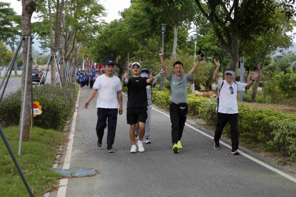 4日上午9时许,30公里行军拉练开始。欢快的军歌声和嘹亮的口号声不时传来,初三年级师生们从大鹏训练基地出发,怀着满心的期待踏上了从未体验过的长途拉练。同学们步履轻快,耳旁荡漾着愉悦的谈笑声与铿锵有力的军歌声。途中,许多人自发地拉起横幅、敲锣打鼓,为我们加油鼓劲,大家铆足了劲,默契地想着——不过来回三十公里,一定要轻松地走完!