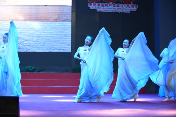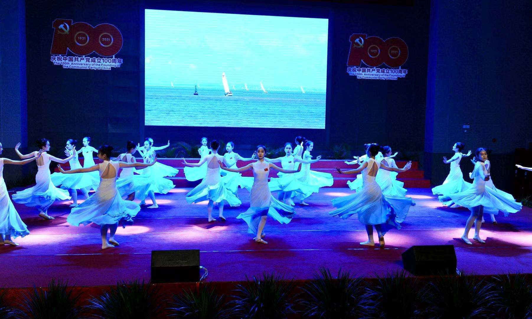 庆祝建党100周年文艺汇演在由校学生交响乐团演奏的《红旗颂》、《歌唱祖国》中拉开序幕。整场演出通过朗诵、歌曲、舞蹈、合唱等形式,串联成一条鲜明的党史脉络,具有强烈的时代感和观赏性。