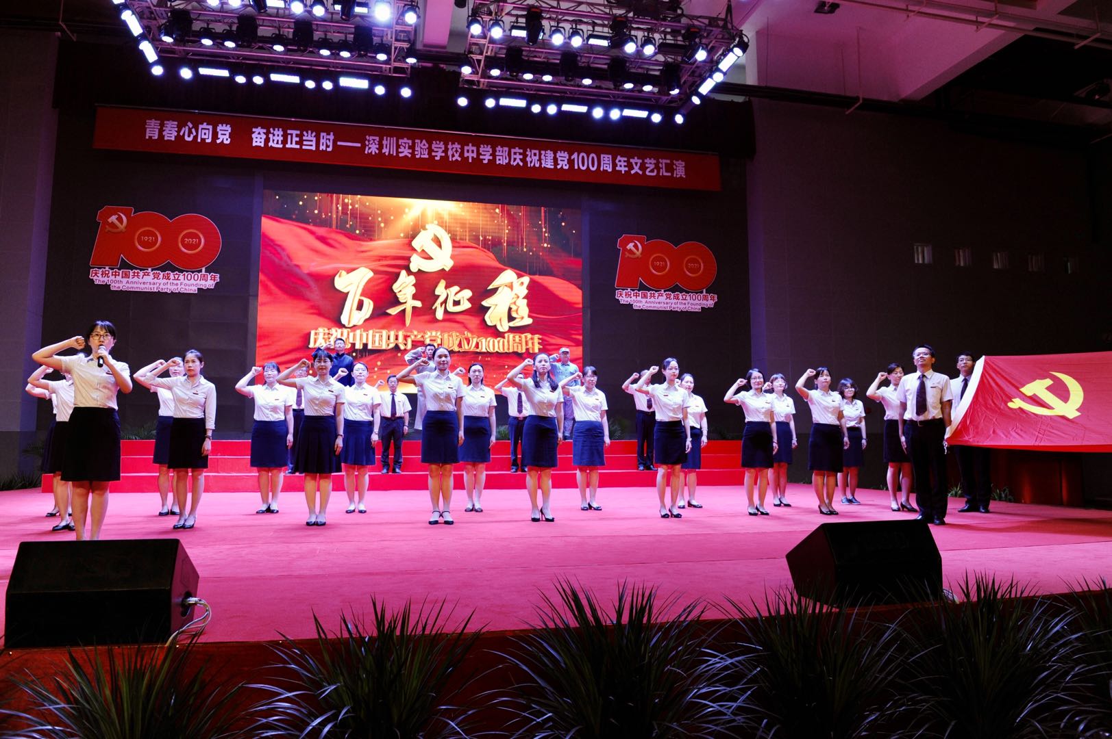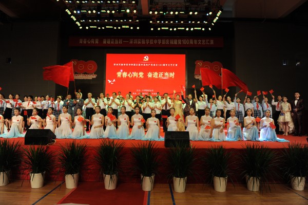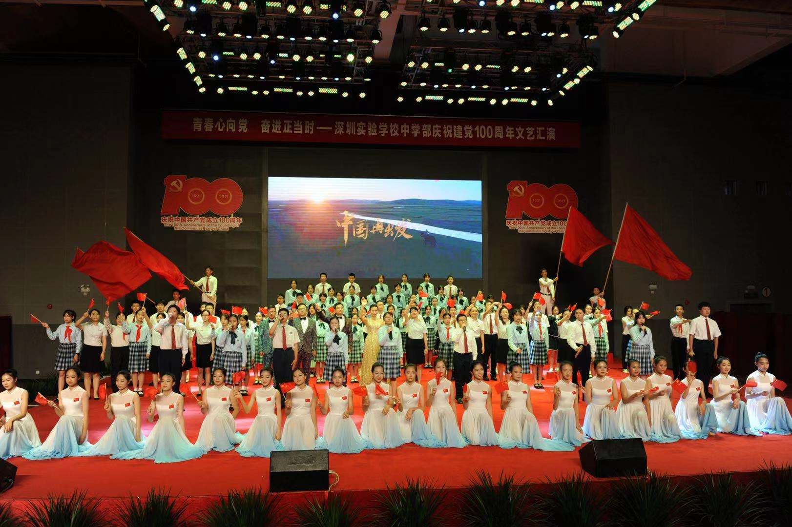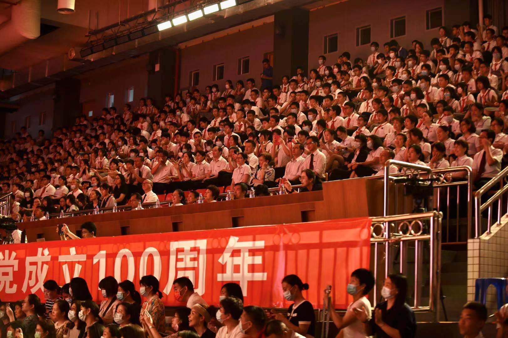 为庆祝中国共产党成立100周年,回顾党的光辉历程,讴歌党的丰功伟绩,进一步激发基层党组织活力,不断增强光荣感、使命感,2021年5月14日下午四点,中学部全体师生、集团总部领导、各学部代表以及部分家长代表,齐聚文体馆,观看“青春心向党 奋进正当时”庆祝建党100周年文艺汇演。活动由中学部党总支主办,学生处、艺术组承办。