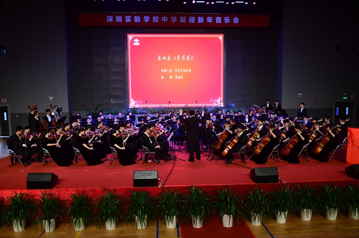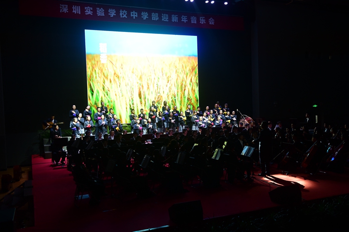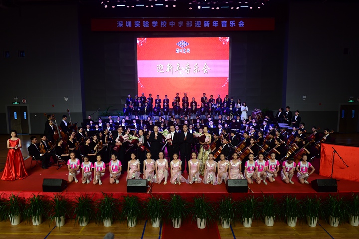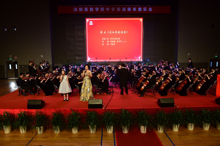 飞扬的歌声,唱响难忘的岁月;青春的旋律,演绎时代的激情。2019年12月20日下午4时,中学部迎新年音乐会在文体馆拉开序幕。在这书声朗朗、郁郁葱葱的校园,中学部全体师生和部分家长代表欢聚一堂,一同走进音乐的圣殿,一同聆听动人的旋律,体味经典的美妙。恰逢澳门回归祖国20周年、新中国70周年华诞之际,深圳实验学校学生交响乐团、中学部合唱团、舞蹈队同台挥洒梦想与才华,共同为我们演绎了一场精彩绝伦的艺术盛宴,用青春的气息,绽放美好华章。衷敬高校长、龙萍副校长、冯维丹副校长出席了本次音乐会,音乐会由初三(6)班刘润可同学主持。