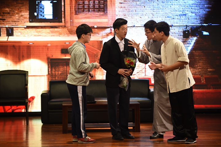 接着,高二(4)班同学根据经典剧目《雷雨》改编的现代校园剧《有雷无雨》。经典家庭伦理大戏与充满理想、爱情、友谊,包含美好青春的大学生活相碰撞,擦出不一样的火花。贴近生活的剧本编排引发在座老师同学的共鸣,赢得了经久不息的掌声。