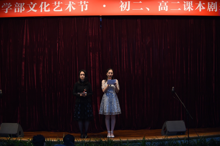 4月27日上午,我校文化艺术节课本剧表演专场在小礼堂举行。本次课本剧专场共四个剧目,由高二年级四个班出演。到场观看的有龙校长、部分干部,以及高一高二全体师生。