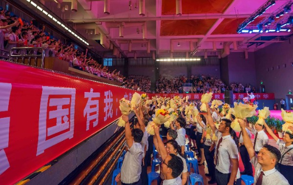 躬耕教坛,强国有我;立德树人,培根铸魂;育人育师,走深走实。伴随着同学们热烈的掌声和热情的欢呼声,老师们与同学和家长们挥手互动着步入会场。在全体高唱国歌后,全场一起观看了展现中学部老师们上课风采的视频。当看到一张张自己熟悉的老师面孔时,现场的同学们都激动地欢呼着。