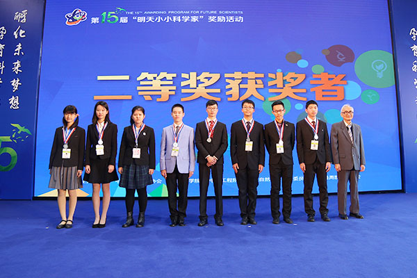 本届“明天小小科学家”奖励活动,历经初选、复评,共有近100名学生进京,由48位院士、专家组成终评评审委员会,终评历时一周。终评会通过研究项目问辩、综合素质考察、知识水平测试等多种方式的测评,最终确定了“明天小小科学家”一、二、三等奖。