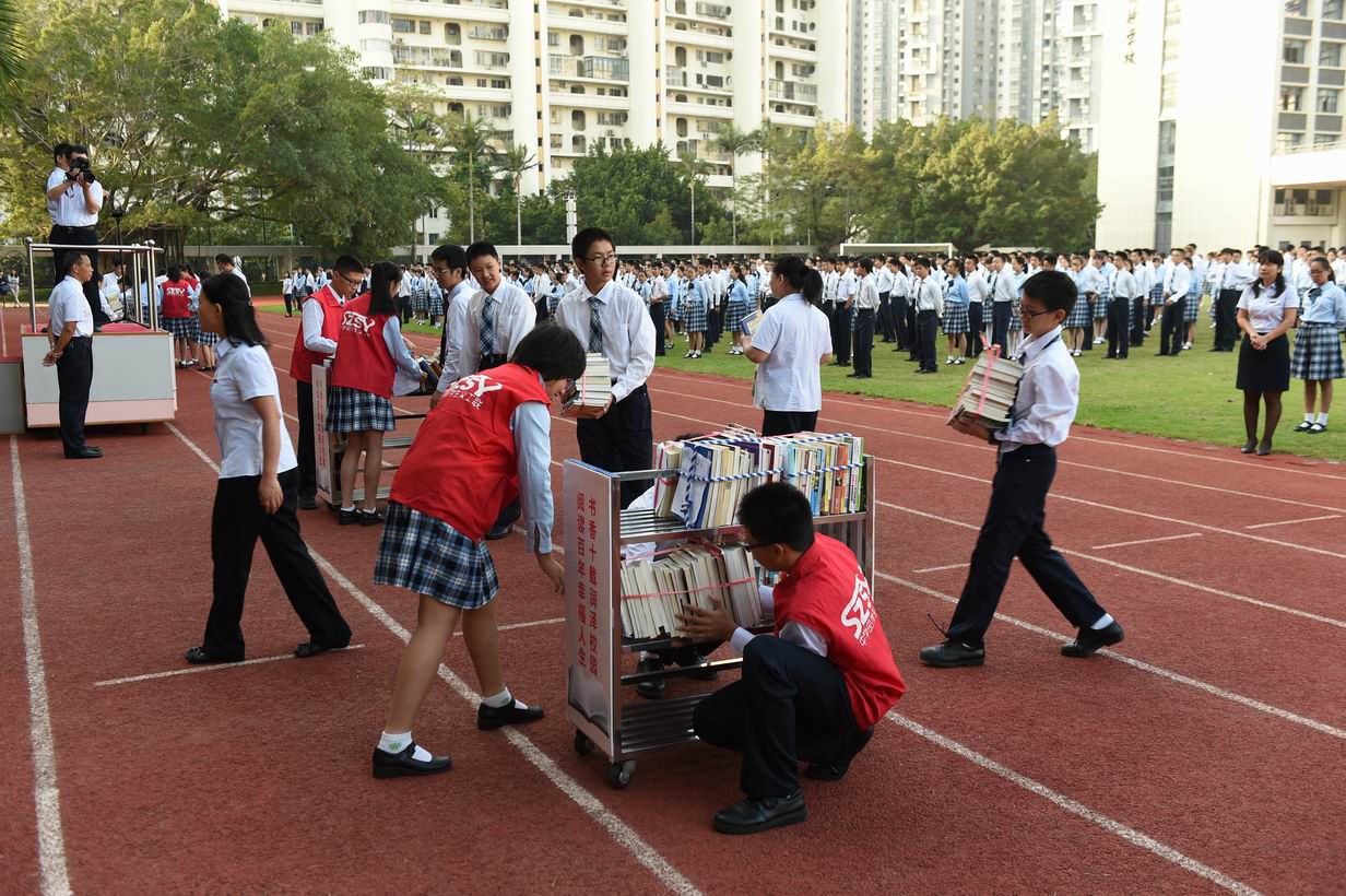 “捐出一本书,传承中华魂”的图书捐赠活动。学校团委发起倡议:全体师生每人至少捐出一本书,用于丰富各楼层读书角,移动书柜,与他人共享。在全体师生和家长积极踊跃地参与下,此次捐书活动共筹集各类书籍1500多本,并为深圳市捐书活动捐出500多本书。