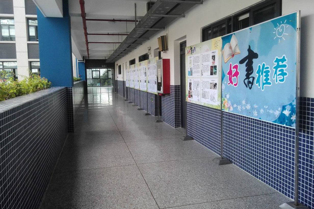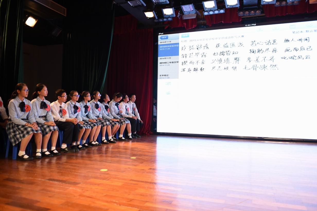 “学生硬笔书法优秀作品展”。各年级学生富有个性地展示了良好的汉字书写水平,工整大方,遒劲有力。初一初二的英语、汉字书法犹如稚鹰初展;初三年级以国学为背景的书法纸上唐宋诗词尽显风骚;高中年级书法已趋成熟、大气、漂亮。中学部每天固定的习字时间让一届又一届学生收获满满。