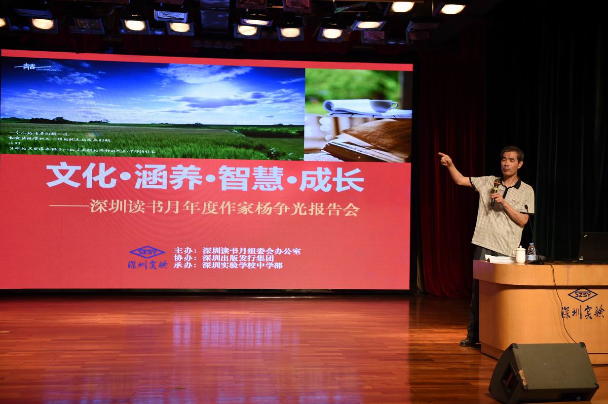 “名人进校园”报告会是每一届读书节的压轴节目。11月27日下午中学部有幸邀请到了深圳读书月年度作家杨争光先生。他为师生带来了主题为“文化﹒涵养﹒智慧﹒成长”的精彩讲座。