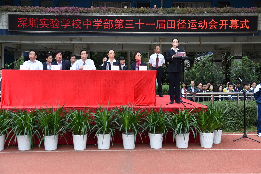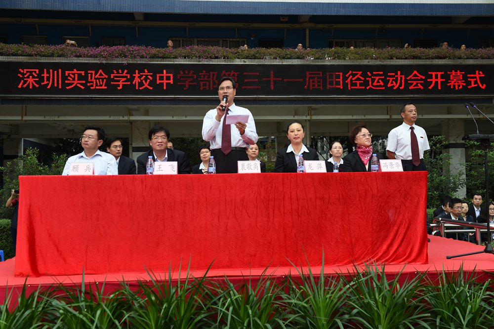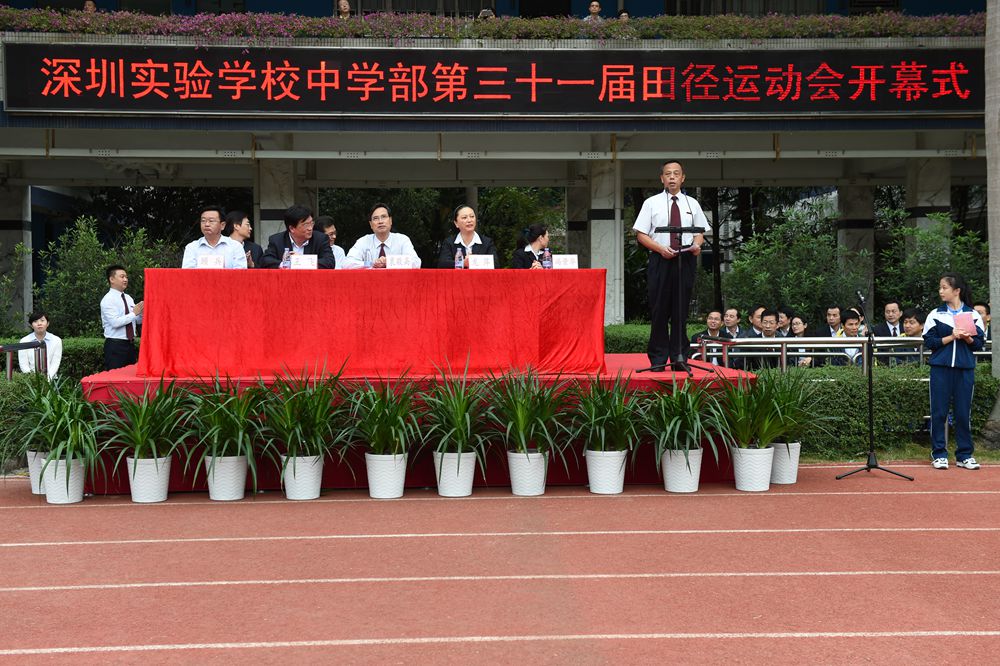 7:50分,本届田径运动会开幕式正式开始。衷敬高校长、龙萍副校长、王飞副校长,初中部部主任冯景华、小学部部主任顾兵以及集团、兄弟学部的相关领导出席了开幕式,应邀出席的还有部分学生家长。开幕式由学生处杨光主任主持。