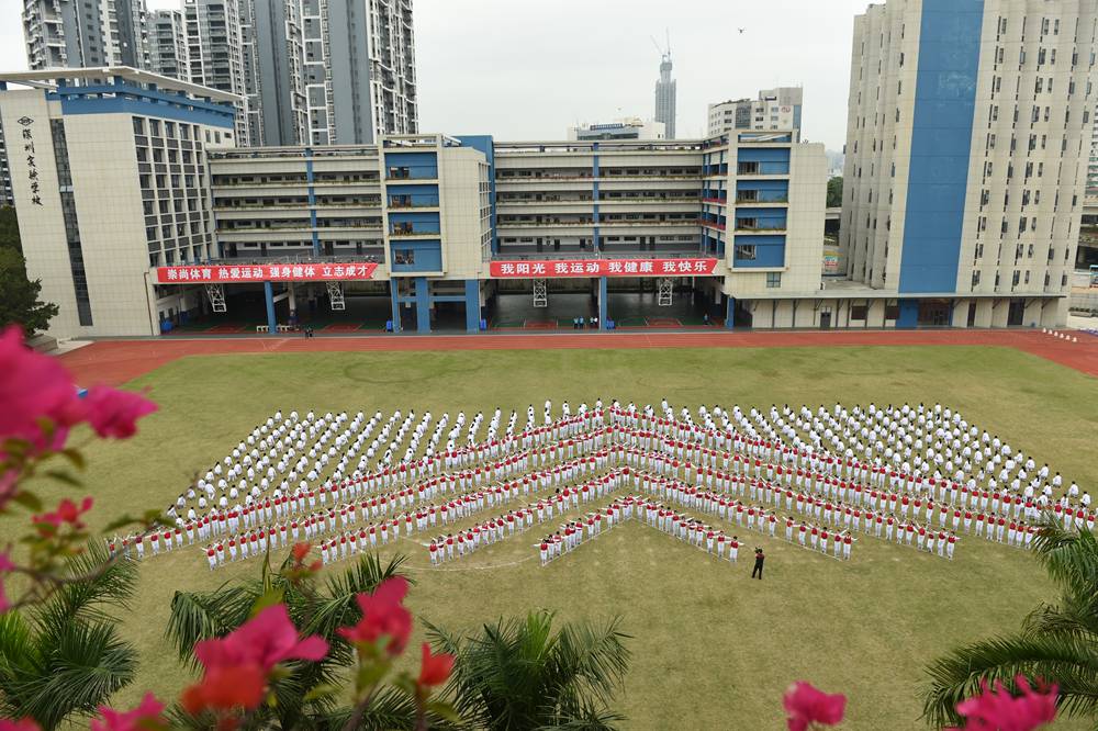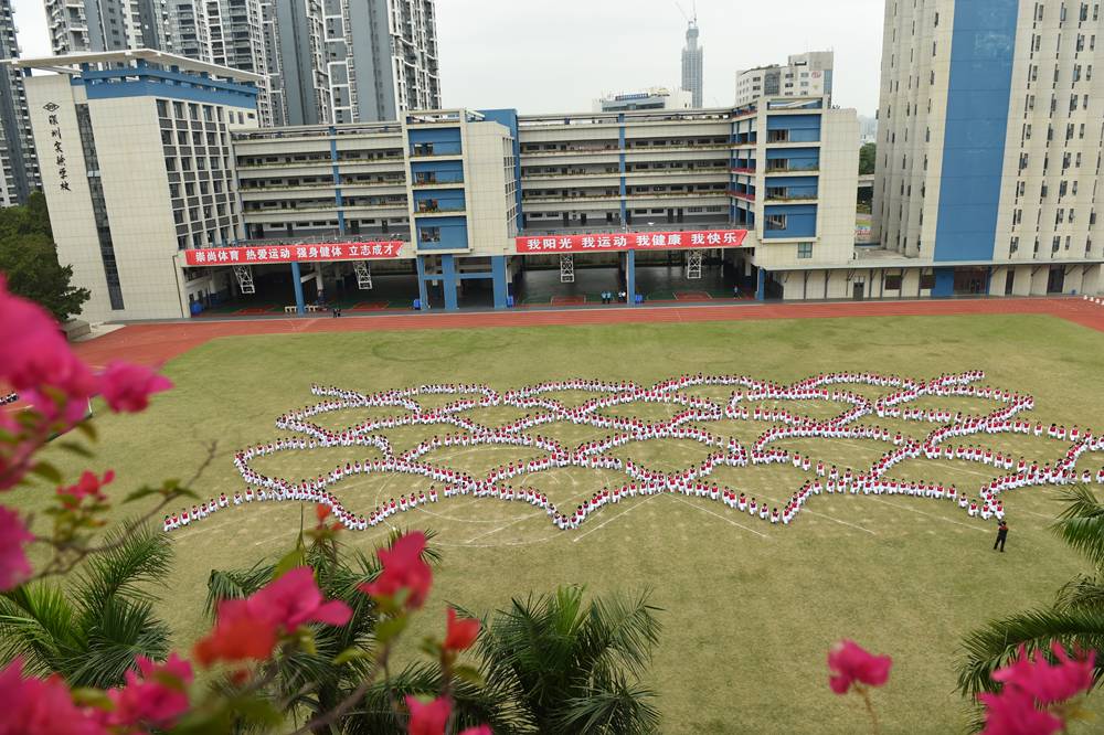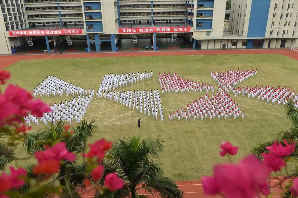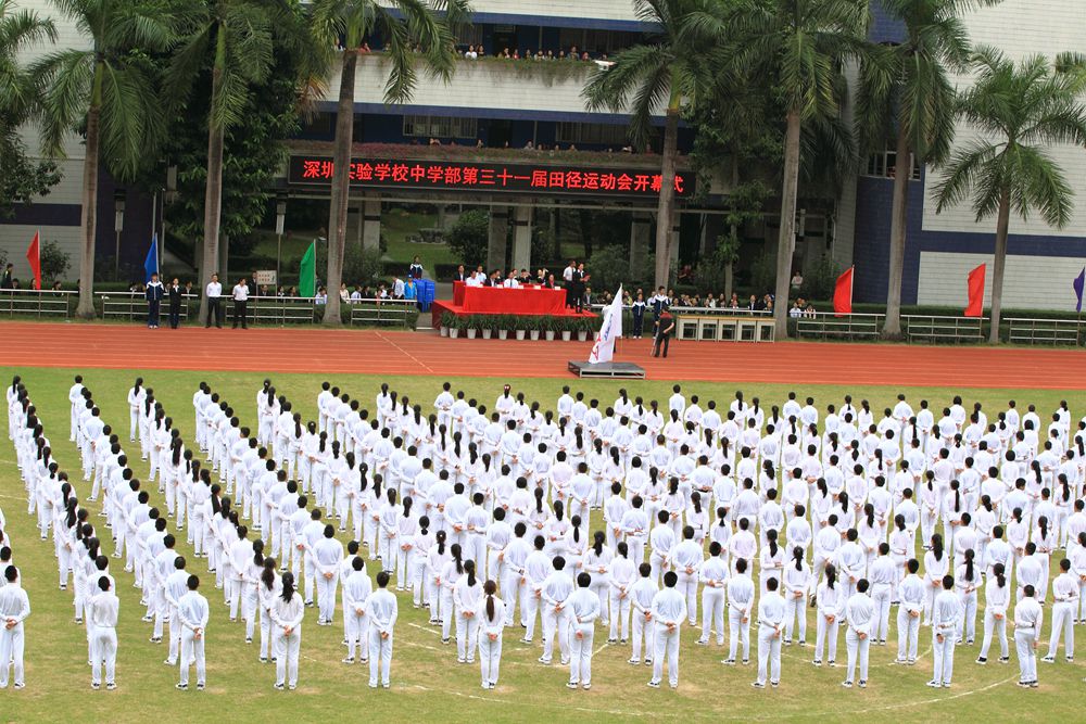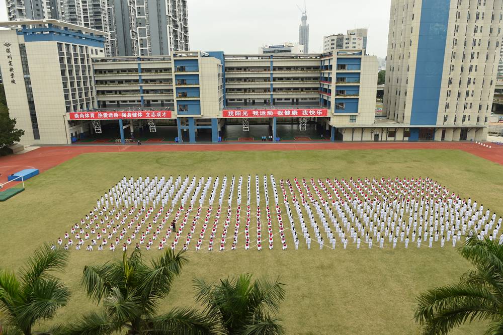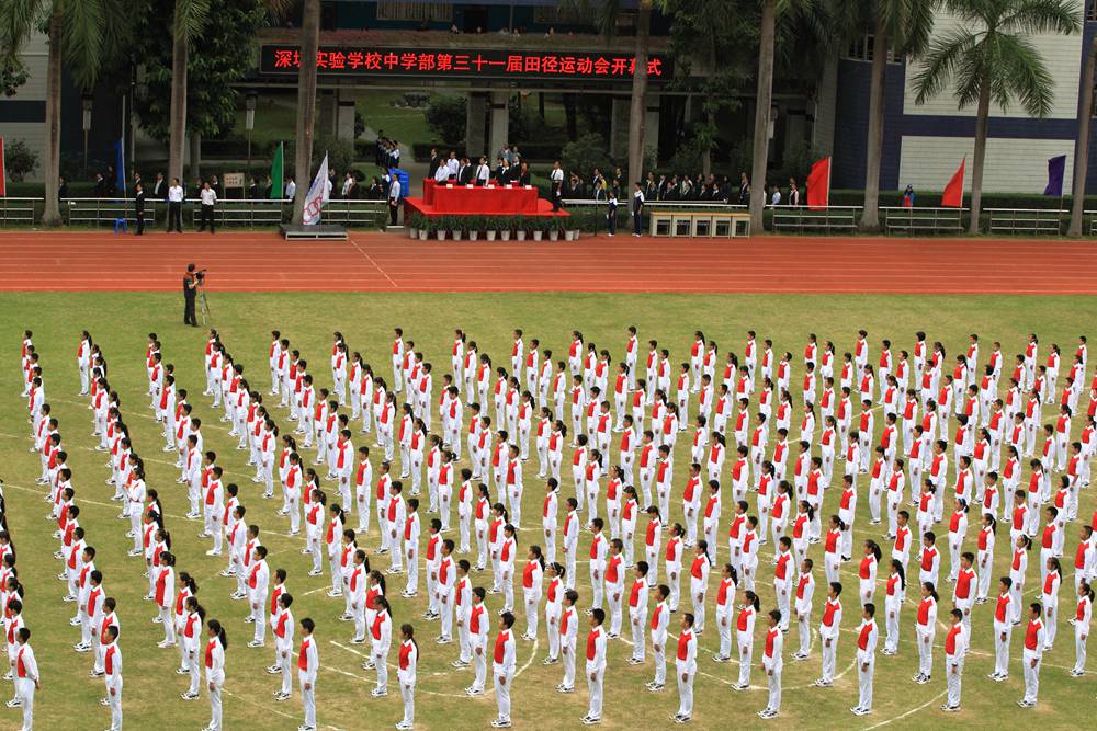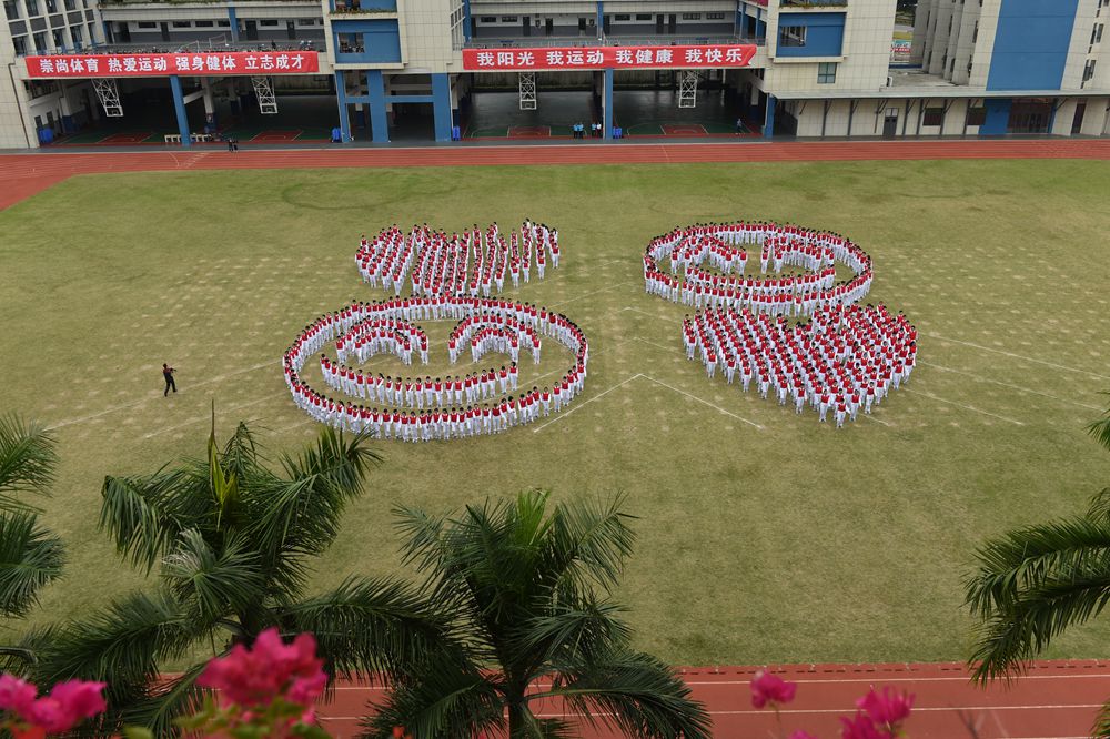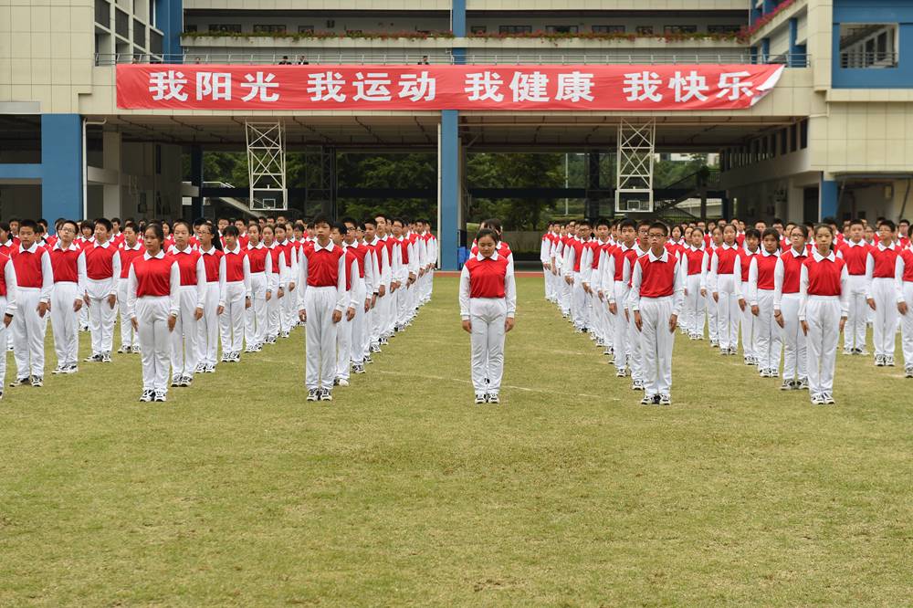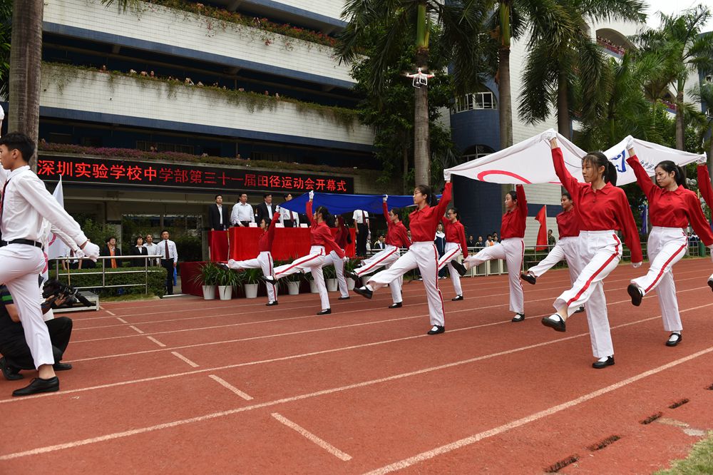 随后,衷敬高校长宣布本届运动会开幕。在《相亲相爱一家人》的欢快歌曲声中,来自中学部初一、初二、高一年级等720名同学向来宾们呈现了魅力无限,多姿多彩的团体操——《快乐成长》。“励精图治,无悔青春”,实验学校中学部的莘莘学子,身穿熠熠红衫,折射出七彩的气度和灵光。纯真的年代,青春飞扬!实验人的心灵中涌动着澎湃的向往;实验人的血液里沸腾着火热的激情。在团体操表演的高潮时刻,场地上拼凑出两个爱心和两个笑脸。这是青春在涌动,是感恩在涌动,是欢乐在涌动。在“人格健全,学业进步,特长明显,和谐发展”的学生培养目标指导下,中学部学子们静静感受所有的美好,深深感恩所有的正能量。唱吧,美妙的音符在跳动。跳吧,青春的脉搏永不停息。中学部全体师生精神饱满,意气风发,让我们一起奔跑,放飞梦想,让希望飞向美好灿烂的明天!