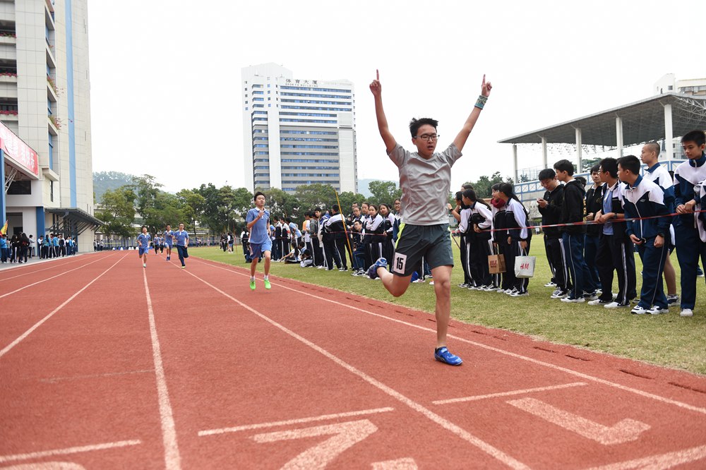 12月3日,在开幕式结束后,随着第一声发令枪响,整个赛场顿时沸腾起来,加油助威声此起彼伏,络绎不绝。你看那径赛场上的运动员,一个个如矫兔般飞离起点,像利箭般冲向终点,引得在场的观众兴奋不已。不论选手是否获得第一,他们都会得到观众的赞美和鼓励。因为在观众的心中,这些运动员都发挥出了不屈不挠,顽强拚搏的体育精神,他们是运动场上的英雄,是实验的“最美运动员”。再看那田赛场上的运动员,也个个摩拳擦掌,毫不示弱。跳高跳远的运动员为了得到更好的成绩,拼尽全力,即使失败也毫不放弃。他们面对目标跨出坚定的步伐,跳了一次又一次。这种不断超越自我的精神是个人的巨大财富,更是将来能够走得更高更远的稳固基石。参加铅球比赛的选手互相竞争,成绩越投越远。他们手中的铅球仿佛变成了一个个充满希望的许愿球,不断追逐着自己的梦想。经过一天半的比赛,学生共打破学校记录达8人次,是近年来人数最多的一次。