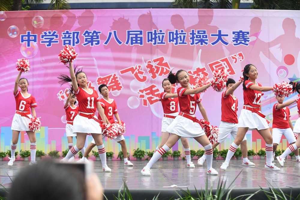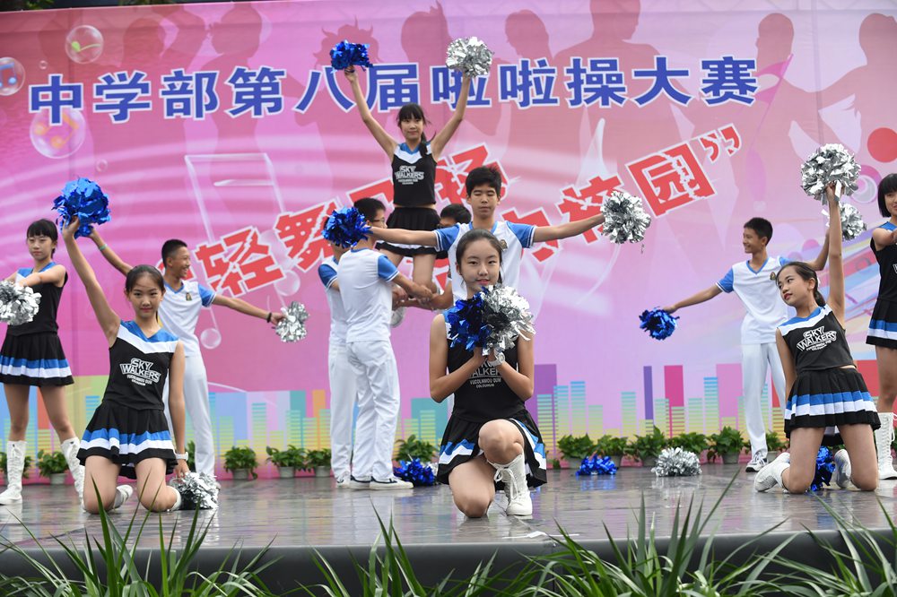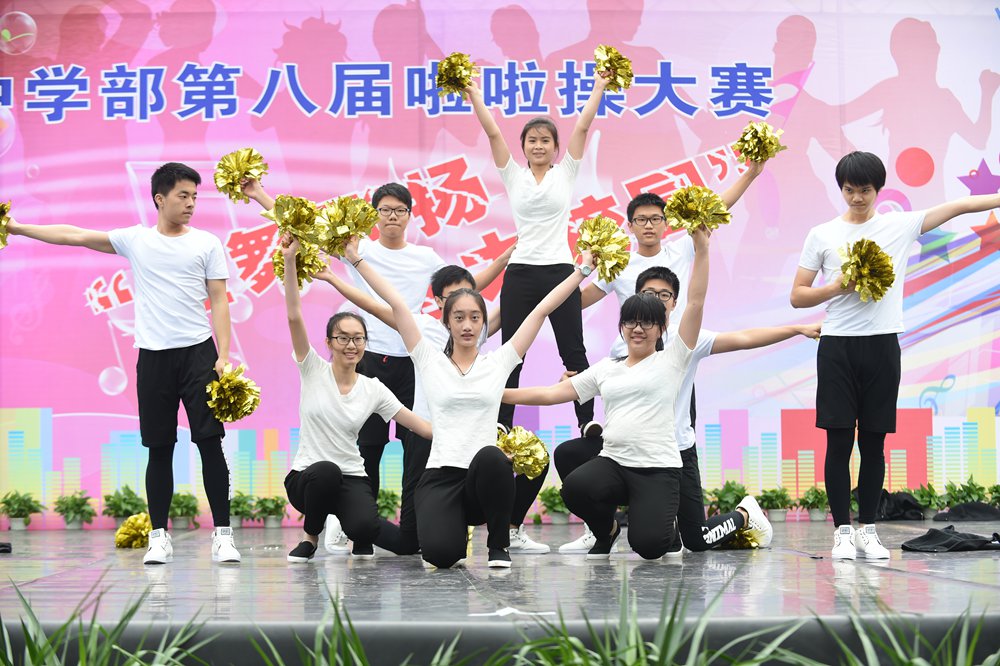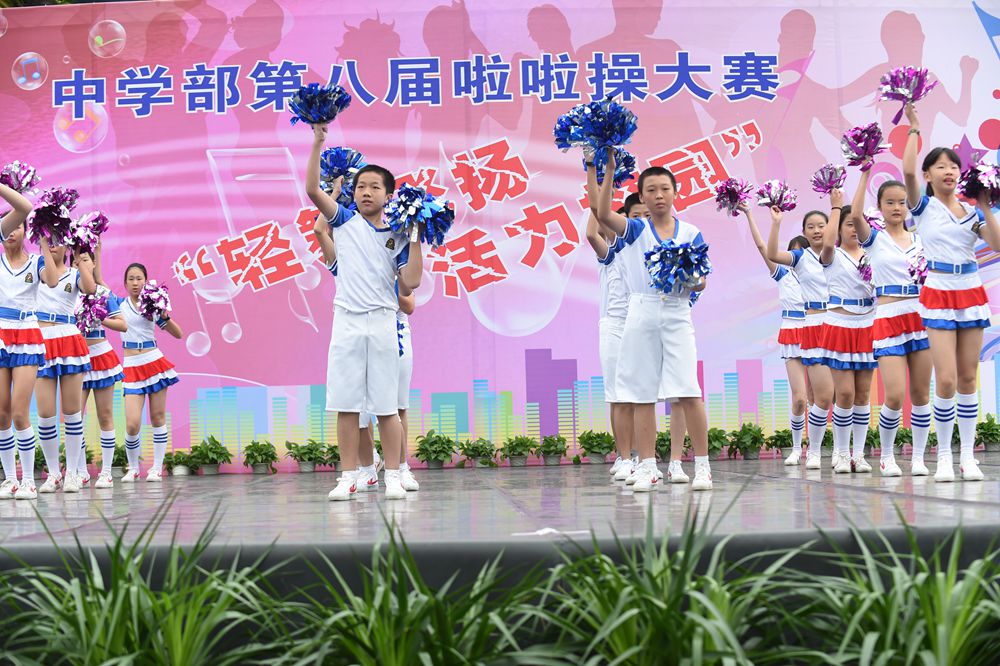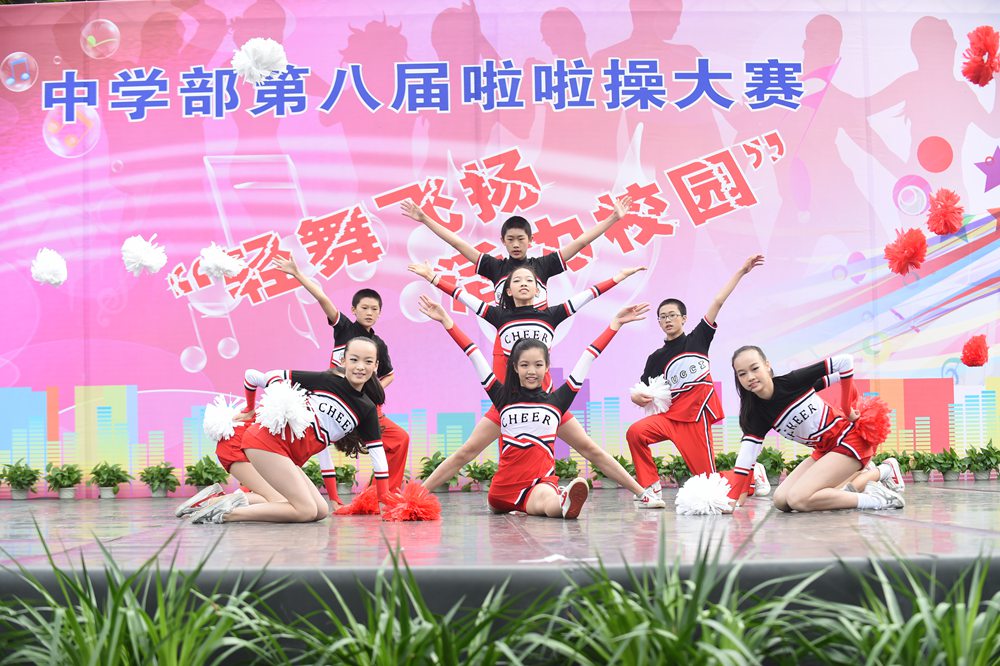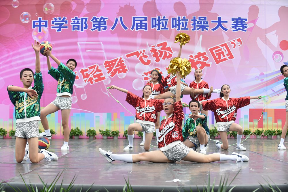 4日上午,中学部第八届“轻舞飞扬,活力校园”啦啦操大赛在全校师生的期盼中如约而至,除毕业年级,其他年级共24个班级的选手依次登场。看,她们脸上洋溢着笑容,动作整齐有力,用身姿诠释着青春的奔放,用热情编织青春的浪漫。她们以同样的激情不一样的舞蹈赢得了观众们的一阵阵掌声。在比赛中,我们可以看到各个班级从舞蹈的编排到音乐的选择,从整体构思到动作推敲都充分展现了同学们的智慧和创造力,体现出实验学子敢想、敢拼的优秀品质。明快奔放的动作挥洒出青春的风采,新颖别致的造型展现了力和美的结合。她们用梦想谱写自由的篇章,用灵动的音符跳出生命的旋律,用动感与活力舞动青春。