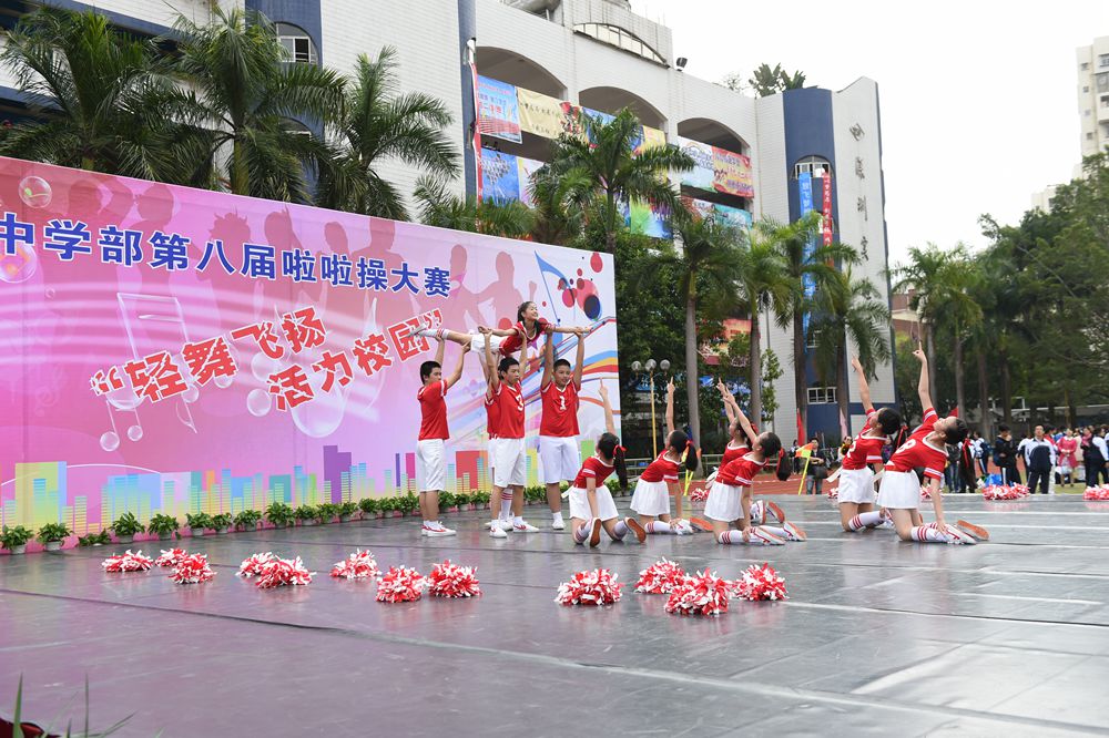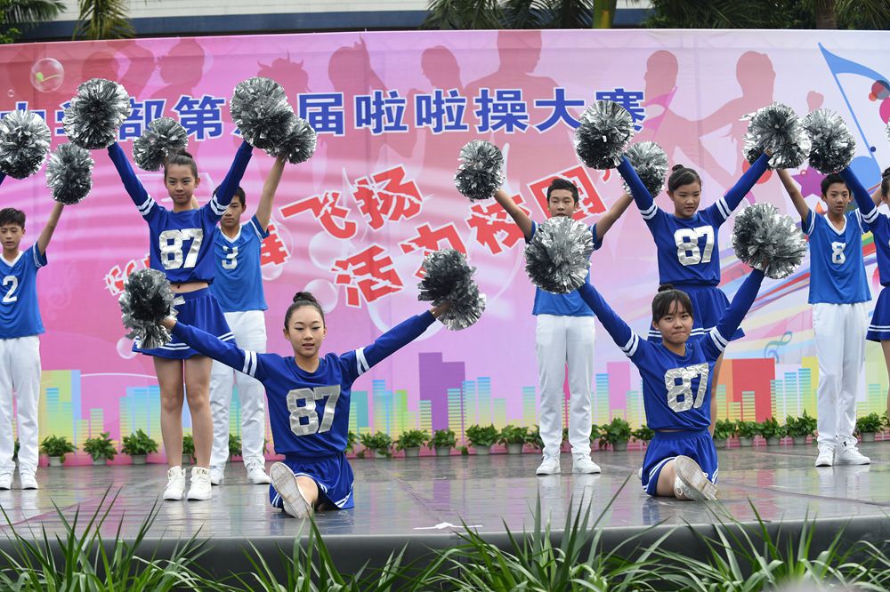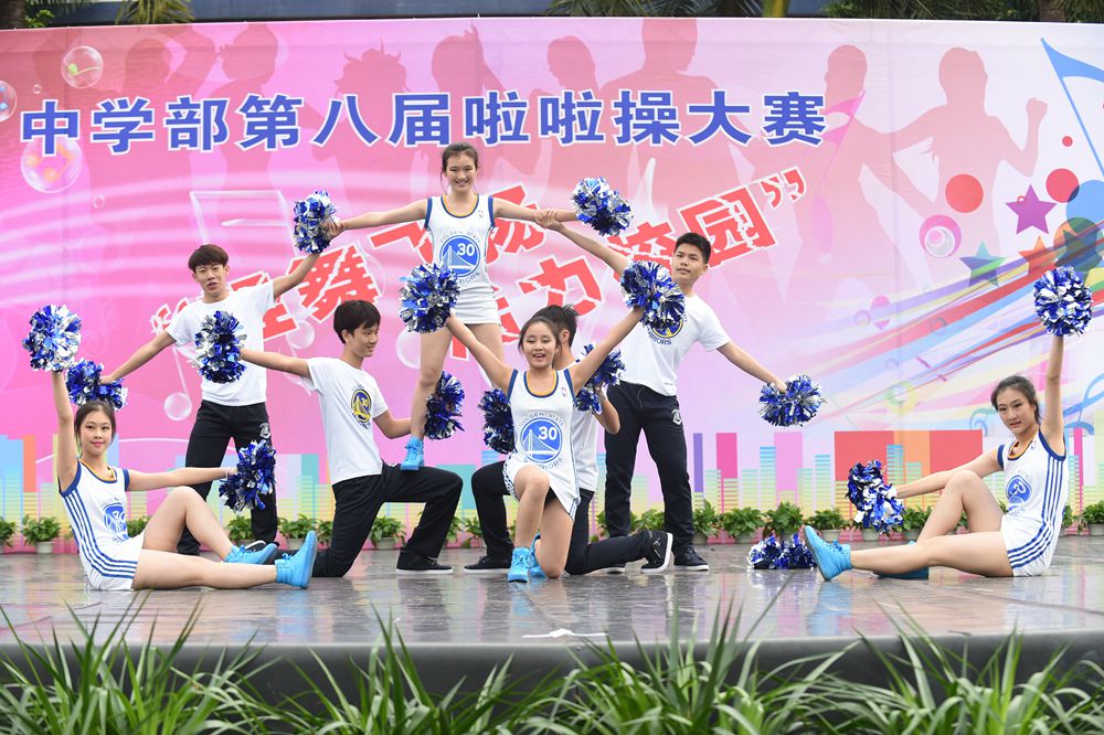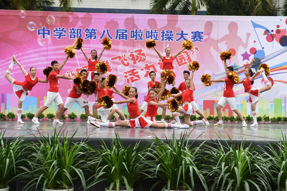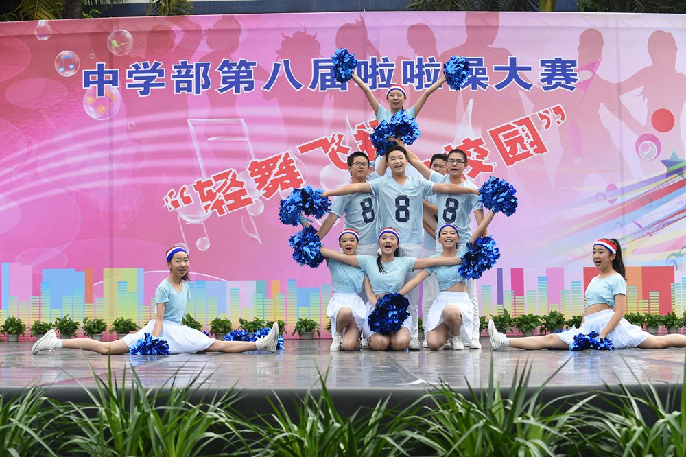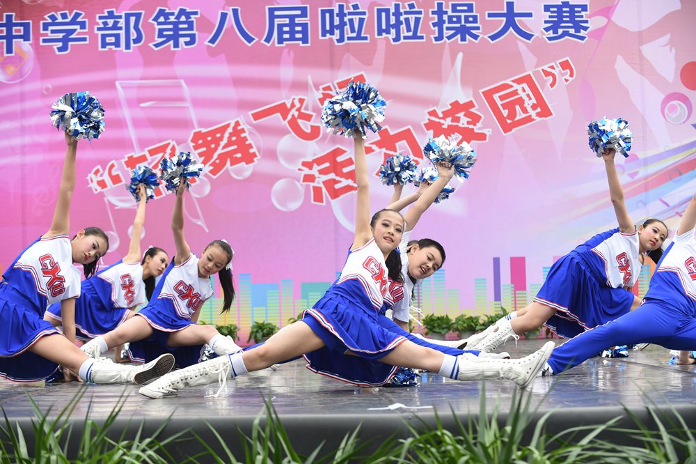 4日上午,中学部第八届“轻舞飞扬,活力校园”啦啦操大赛在全校师生的期盼中如约而至,除毕业年级,其他年级共24个班级的选手依次登场。看,她们脸上洋溢着笑容,动作整齐有力,用身姿诠释着青春的奔放,用热情编织青春的浪漫。她们以同样的激情不一样的舞蹈赢得了观众们的一阵阵掌声。在比赛中,我们可以看到各个班级从舞蹈的编排到音乐的选择,从整体构思到动作推敲都充分展现了同学们的智慧和创造力,体现出实验学子敢想、敢拼的优秀品质。明快奔放的动作挥洒出青春的风采,新颖别致的造型展现了力和美的结合。她们用梦想谱写自由的篇章,用灵动的音符跳出生命的旋律,用动感与活力舞动青春。