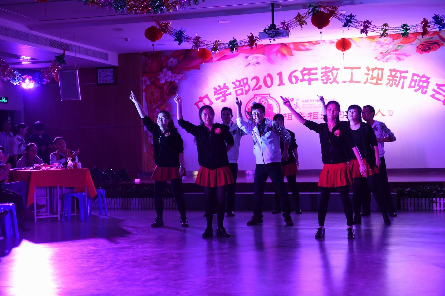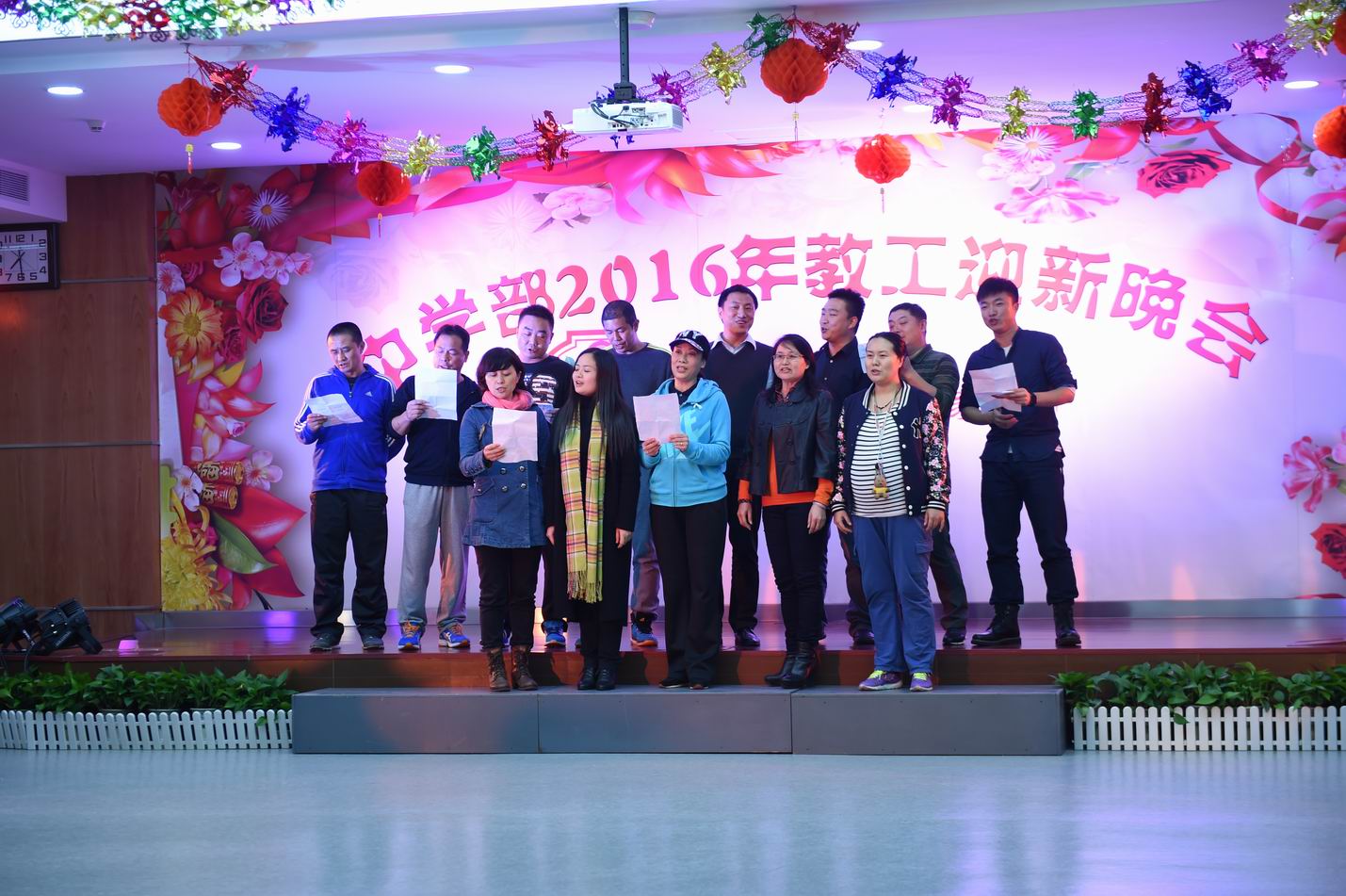 最后,在欢快的乐曲声中教工们互致新年问候,共同迎接充满希望的2016年。(文/周养平 图/靳军强)