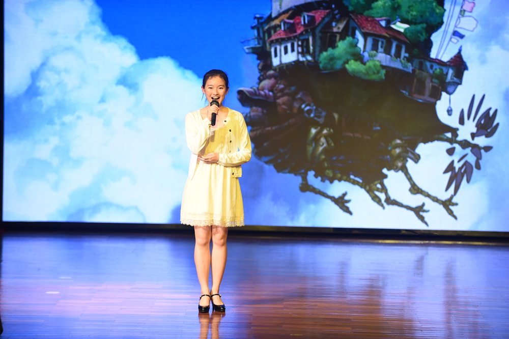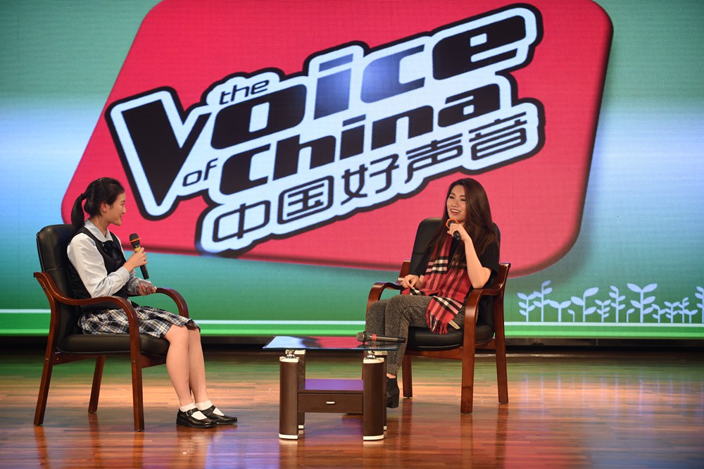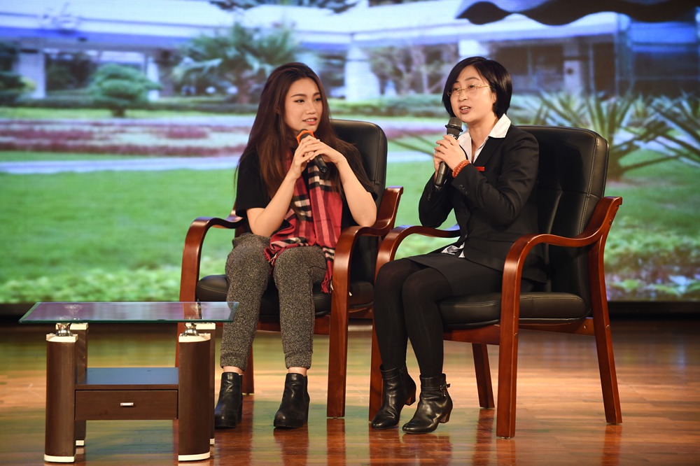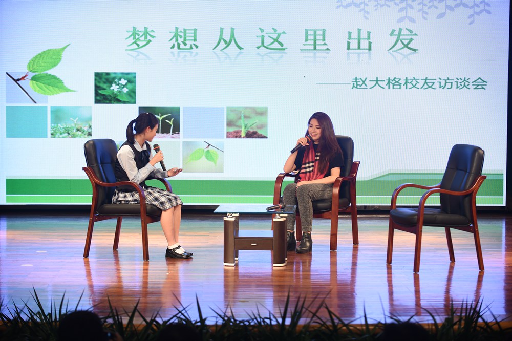 在活动的开场赵大格先为师生们带来了一首动感十足的《All About That Bass》,其独特的嗓音和扎实的唱功获得了在场师生们热烈的掌声。一曲结束,主持人邀请了大格在实验读书时的两位恩师依次上台,分享了她在实验校园生活的点滴。大格自小学就加入了校乐团,而刘忠老师则是当时乐团的老师。他表示大格虽然没有学过专业的声乐,但她在乐团演奏马林巴琴的经历为她现在的节奏感和唱功打下了扎实的基础,而她脚踏实地的做事风格更是造就她如今成功的原因之一。而作为大格当时的班主任的王巍老师也肯定了她沉稳的性格。由此可见,好的人品性格是未来成功的基石。