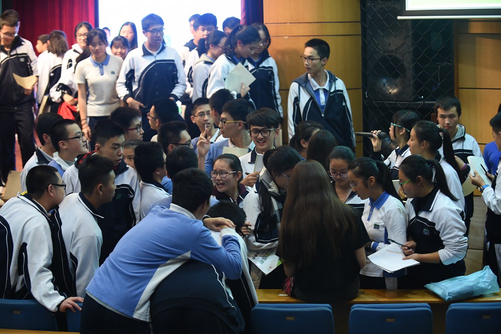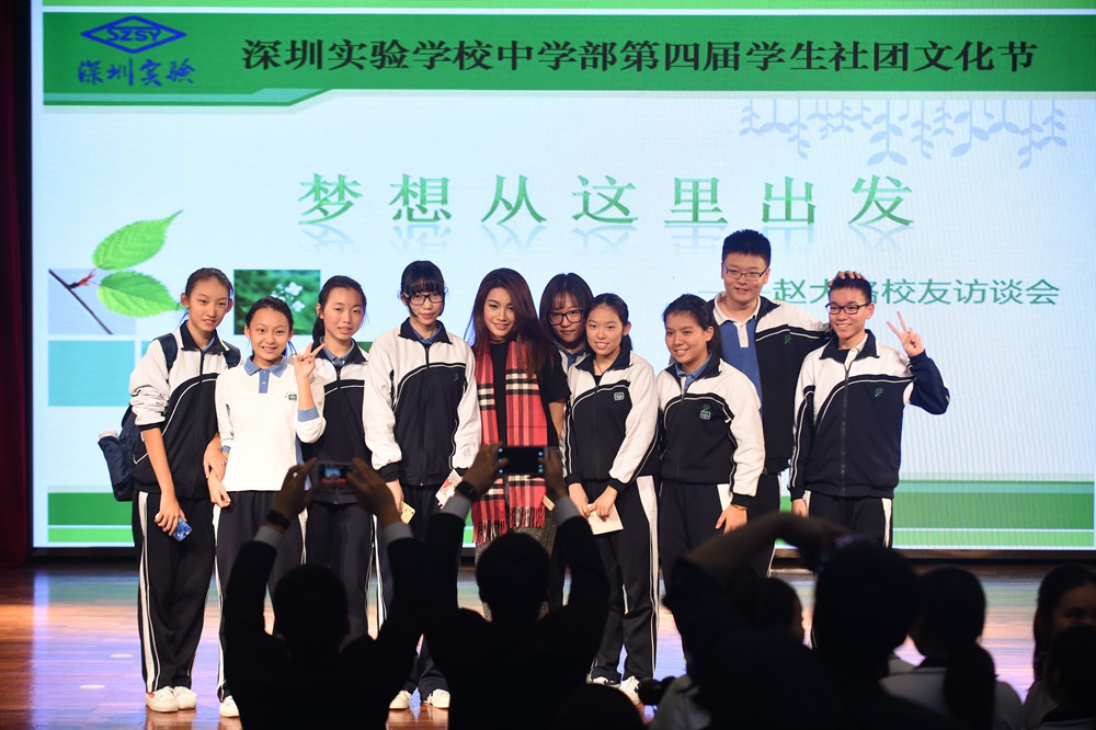 赵大格在活动的现场互动环节也表示,实验学校一直贯彻的健全人格教育理念对她人格的塑造起了重要影响,同时她也鼓励同学们去坚持做自己所热爱的事情,学会利用好时间平衡学业与兴趣的共同发展。在访谈会的最后同学们纷纷上台和赵大格合影留念,为这次活动画上了圆满的句号。
