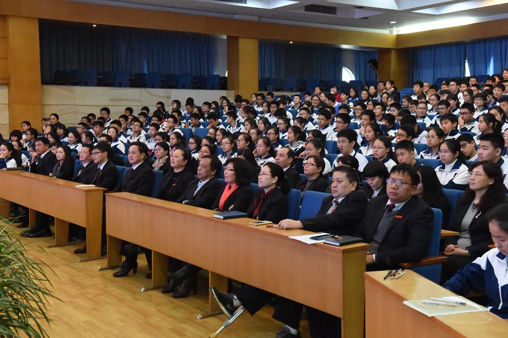 3月14日下午,中学部2016届初三年级全体师生齐聚五楼小礼堂,举行“我们一起上实验”主题大会。龙校长、部分行政干部以及部分家长亲临会场,大会由曲冉冰、张清淇两位同学主持。