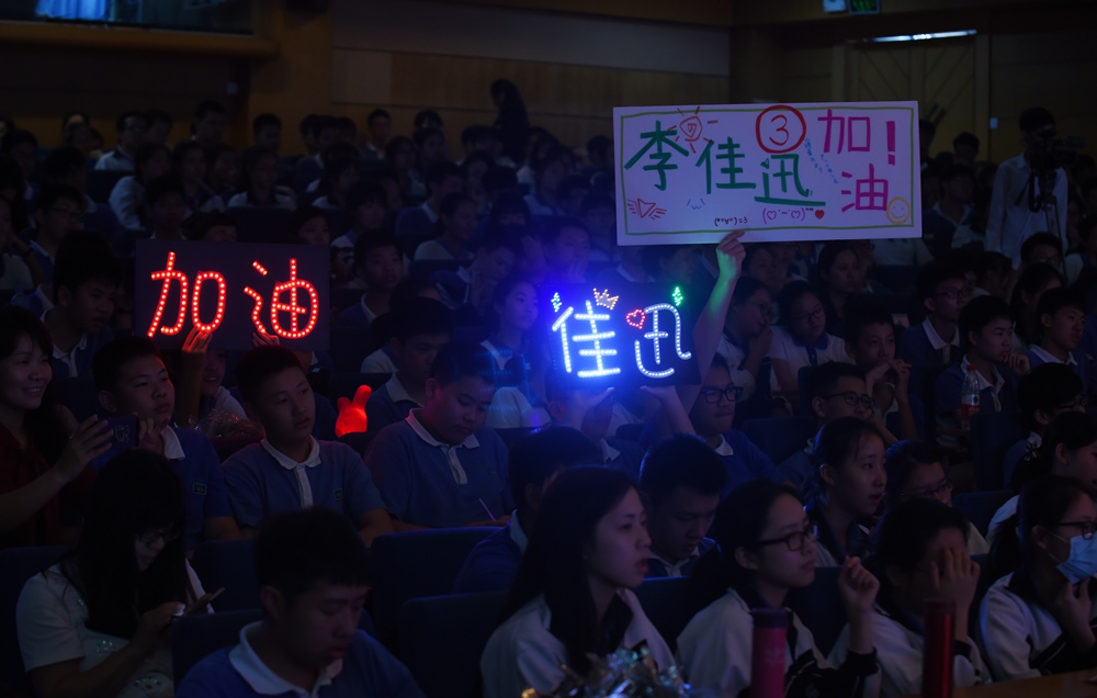 4月25日下午4点,令人瞩目的总决赛终于在小礼堂拉开了帷幕。来自初二的两位主持人和来自高二的主持人一出场便将全场气氛带入高潮。每一位选手的登场,都伴随着此起彼伏的尖叫声和欢呼声,回荡在小礼堂,久久不能散去。