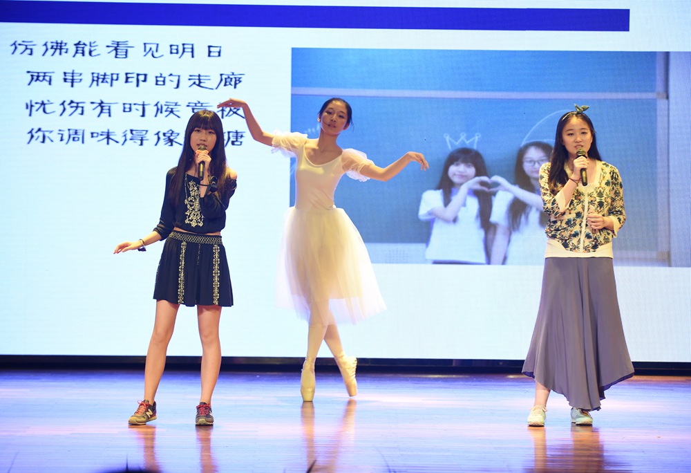 音,为梦而神鹤翔舞。音,为想而风舞翩跹。音为梦响,因为梦想,我们在实验的舞台上,舞动出青春华彩!(文/初二7班 杨茜麟 图/电教室)