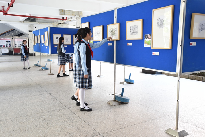 在一楼前厅,“清风徐来”学生美术课堂作业展和学生校园采风展也如期而至,装裱一新的学生作品更有品位与雅致。多年来,每逢艺术节都将集中展示美术课堂教学的效果,每次都有新的内容和形式,学生作品的质量一年比一年高。通过展出,为同学们搭建了一个互相学习、共同提高的平台,有效激发了学生的学习兴趣,提高了学生的专业基本能力。学生在老师的引导下用心灵去表达对世界的看法和认识,其作业个性鲜明,不拘一格。虽然,有的作业还显得稚嫩,但他们敢于创新、敢于创造、敢于想象,很好地培养了学生的创造力和对美的鉴赏能力。(文/艺术组 图/靳军强)