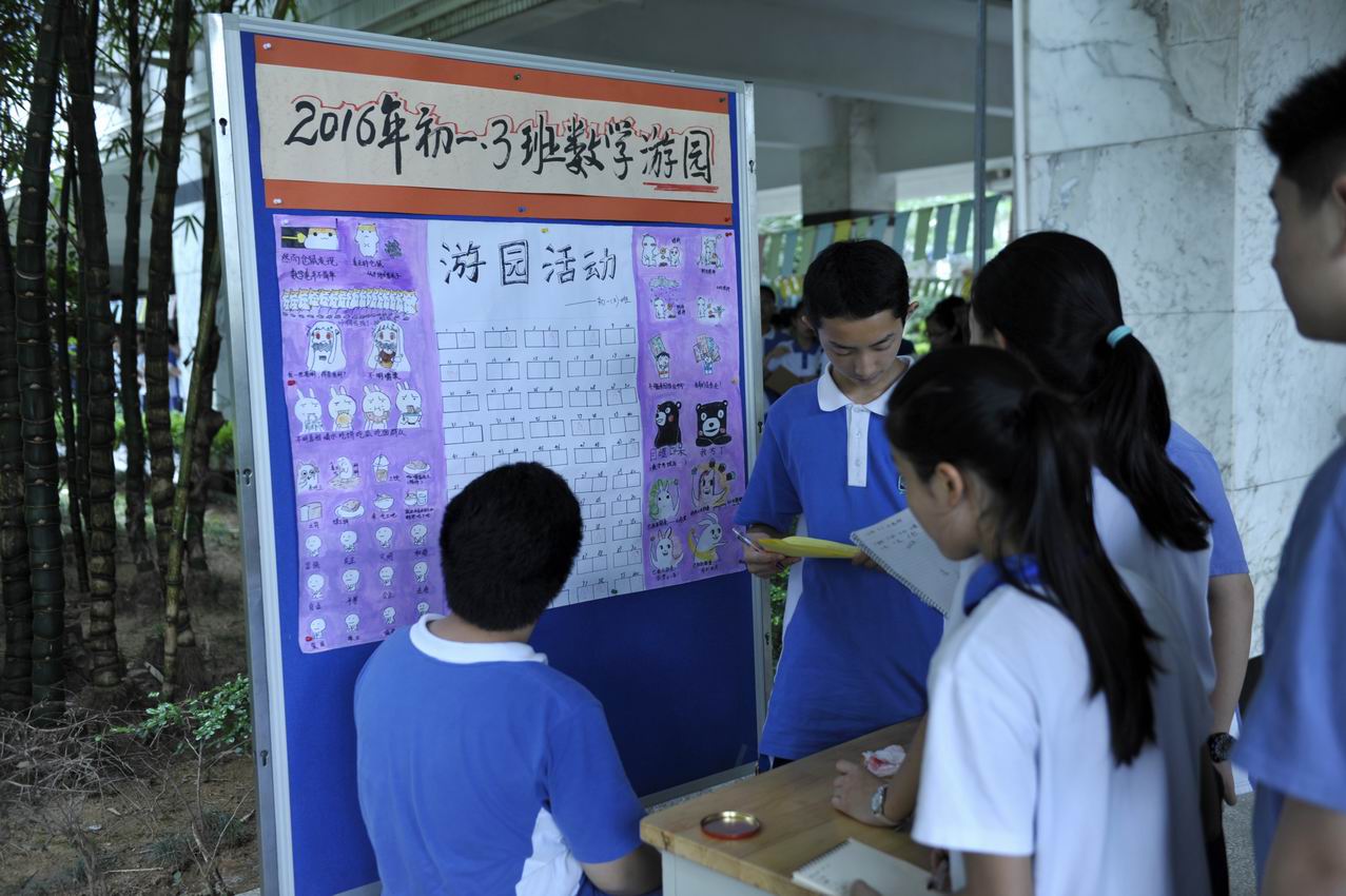 5月18日下午,初一数学游园活动在一楼举行,各种类型的数学趣味题挂满中厅,彰显各班同学想象力和创造力的总分记录板报各有特色。活动热烈而有序,从冥思苦想的不语,到探索答案的轻声讨论,再到得出答案时的欢呼,一个又一个趣味数学题在大家的合作下被攻破。最终,3班第一个攻破了100道题夺冠,2班和5班紧随其后,拿下第二和第三名的好成绩。这次的数学游园让大家真正感受到,在“思考”中学习数学,在数学中体会“思考”。(文/初一(2)班 胡妍雨)