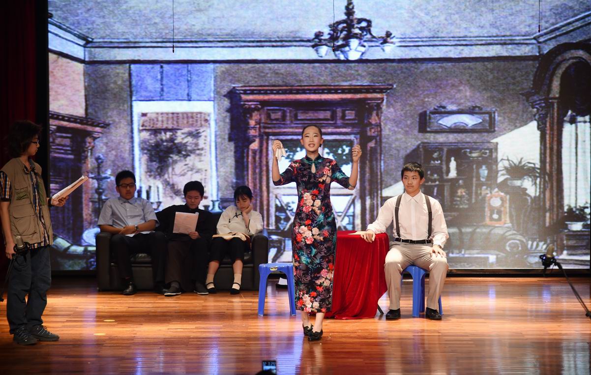 5月19日下午,高二年级在小礼堂演出了精心排练的三台话剧,分别是《羊脂球》、《猴爪》、《金陵十三钗》。从改编剧本到正式演出,学生们表现出了浓厚的热情和令人赞叹的编演能力。舞台帷幕拉开,演员们便快速地引领观众们进入了戏剧世界,演员们的表情、动作都与人物身份、性格、经历相符,表现得十分专业;舞台布景简洁大方,音乐、画外音的使用恰到妙处。现场气氛十分热烈,三个剧目,赢得了观众们的笑声、掌声和赞叹声。(文/吴珊老师)