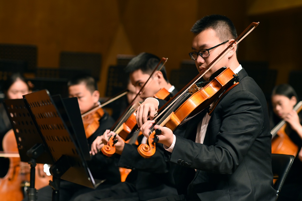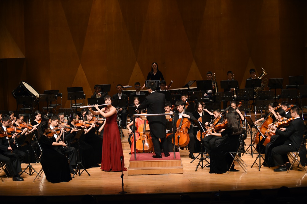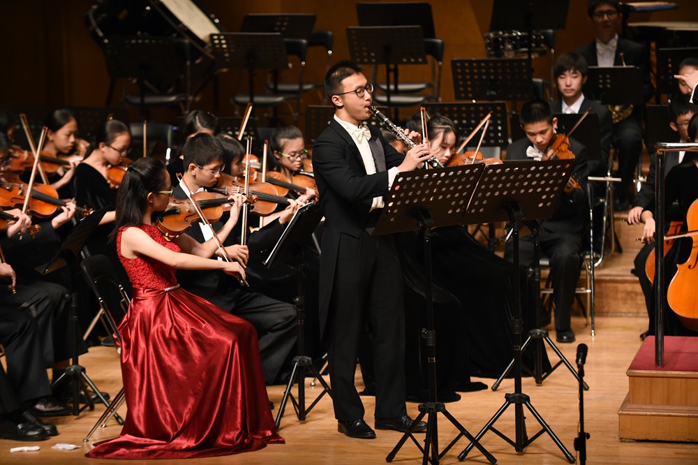 下半场,校乐团的乐手们又一次用完美的表演征服了观众。情感色彩丰富作曲家肖邦的作品《F小调钢琴协奏曲》在邱天燊与乐团的演绎下令人击节称赏;许宜佳和李鸿桥分别与乐团配合,先后演奏了查米纳德的《长笛协奏曲》和音乐大师韦伯的《降E大调黑管协奏曲》。女高音陶致君同学的《漫步街头》《木偶之歌》咏叹调又一次创新的乐团的演出形式,天籁之音与乐团的演绎交织在一起,余音袅袅,不绝于耳。法国作曲家奥芬巴赫的名曲《地狱中的奥菲欧》,激昂雄壮、富有激情的旋律将音乐会推向了高潮。大剧院的音乐厅再一次被深圳实验学校学生交响乐团完美的演出沸腾起来。