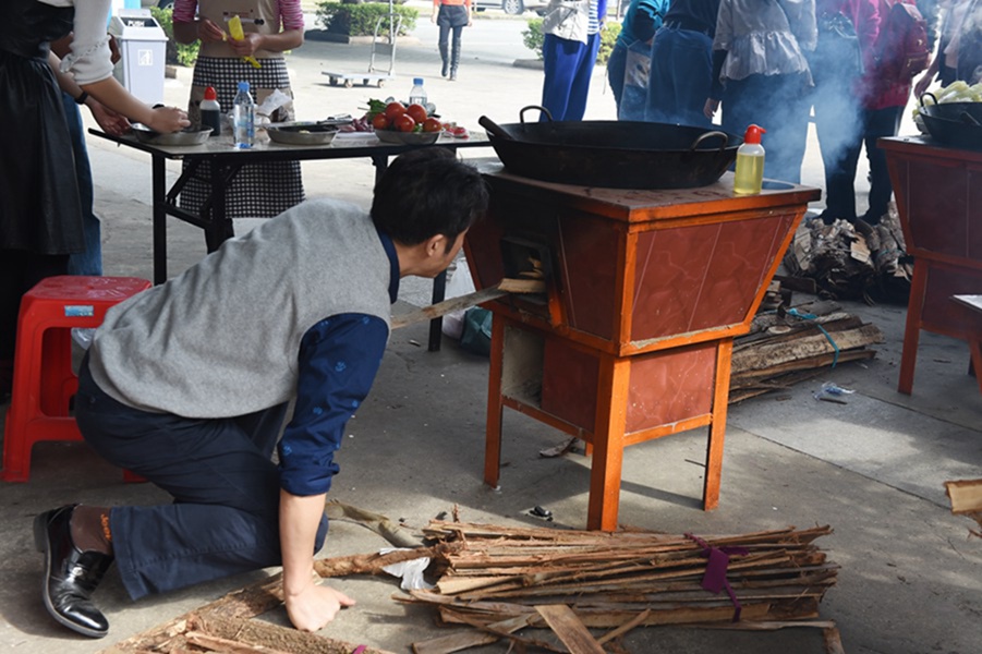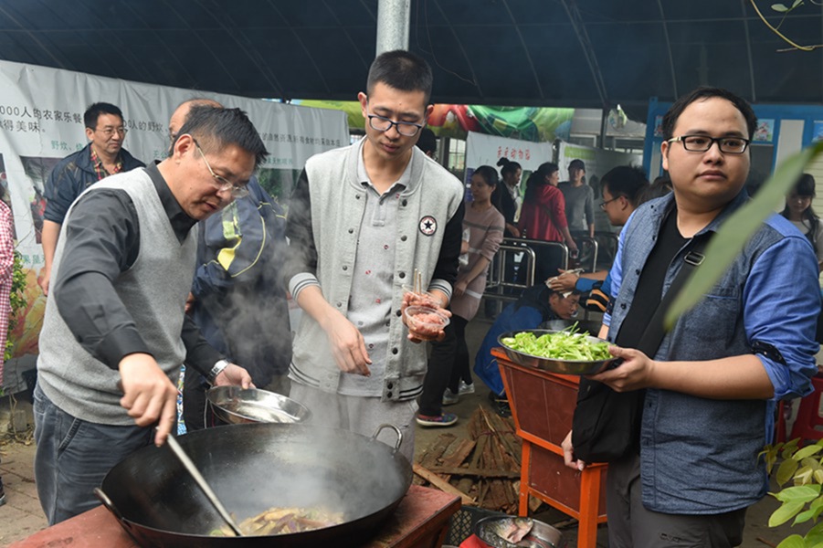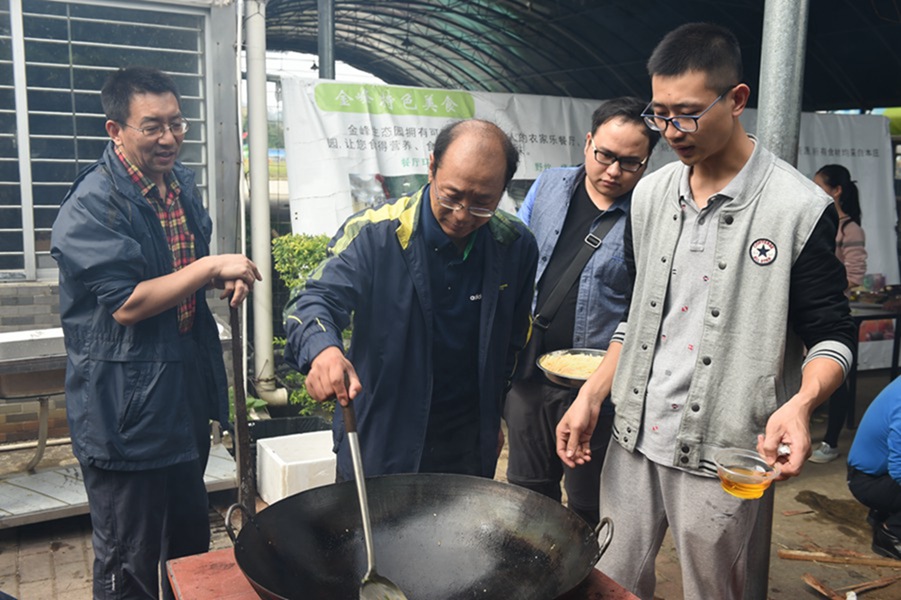 尤其是野炊环节实验俊男靓女们的厨艺大比拼,可谓是热火朝天,热闹非凡,把整个秋游活动推向了高潮。捉鸡捞鱼,淘米洗菜,起火生灶,剁肉切菜,抡勺掌厨,煎炒炸绘……平日校园里风流倜傥睿智文雅的老师们瞬间变成了一个个活泼可爱的“猎人”,朴实勤劳的农夫,技艺精湛的大厨,每个小组都全员参与,分工明确,众志成城,每个组员都争分夺秒,各显神通,为本组夺取本次金厨争霸赛的大奖出谋划策,添柴献力。