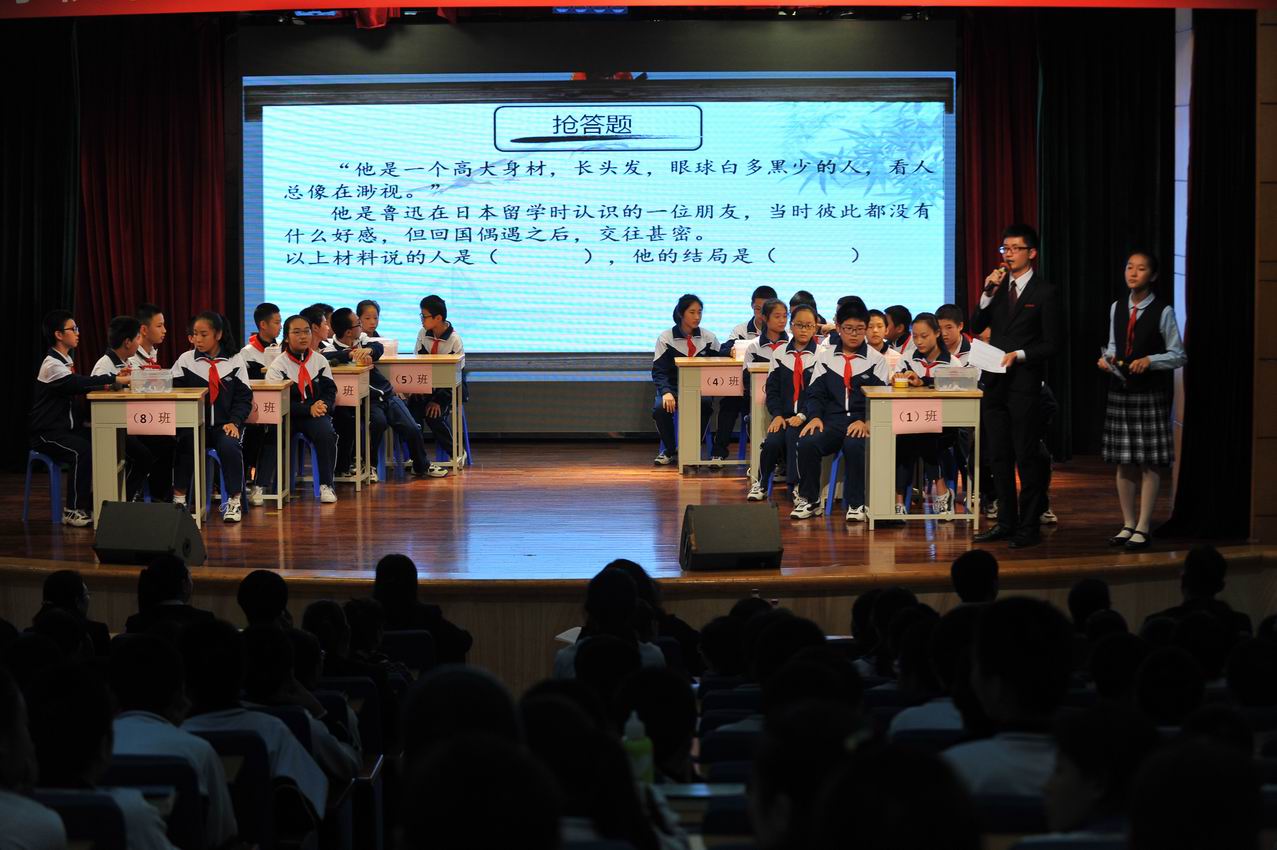 本次两新教学专题活动的收尾环节是由初一语文组为大家奉上初一年级《我与经典有约》的阅读分享交流活动。本次交流形式新颖,以阅读知识竞赛方式进行,把个人阅读与班级团队结合,把阅读效果和班级荣誉挂钩。用这一巧妙方式,即把阅读要求落到实处,又彰显阅读立校理念。交流内容上,知识竞赛范围选择了《朝花夕拾》和《西游记》。鲁迅的现代文学与西游古典文学结合,对黑暗时代的反思与大唐盛世的幻想结合,对国民性的深入批判与对理想不懈追求结合。古今对照,相辅相成,相得益彰。学生表现的积极、有礼、守纪、自信。题目有必答题,检查学生记忆情况;有主观题,体现学生理解高度。知识竞赛从内容到形式,独具匠心;从流程到主持,顺畅完美。深圳市语文教研员端木老师,给予高度的评价和赞赏。