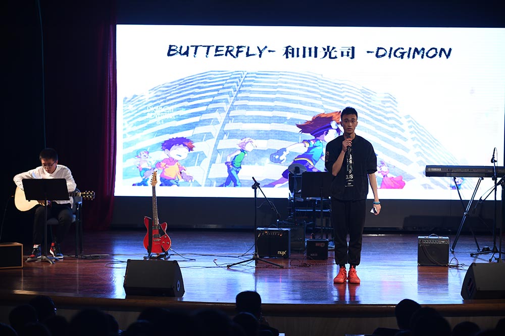 演出到了最后阶段,电声乐队LEAK再次登台,以一首英伦经典摇滚《Don’t look back in anger》重新将现场气氛点燃。随后,王思浩、郑舒哲两位民俗文化社成员作为嘉宾登台演唱周杰伦经典J式歌曲《简单爱》。学生时代的青涩与懵懂,简单轻快的节奏,高潮开始时的全场大合唱将本次专场的气氛推到最高潮,欢呼声、掌声、叫好声不断。最后一首歌,是数码宝贝的主题曲《Butterfly》,徐徐木琴声中,主持人与社长深情介绍着这首代表着童年的歌曲。谨以此曲,致敬我们的童年,木琴声停,掌声不绝。电声乐队的加入,掀起一股激燃的声浪嗨翻全场,随后,电声渐停,只留键盘清澈干净的声音回荡在小礼堂中,这时社团中的小提琴、长笛、中提琴、大提琴的演奏者们纷纷上场齐奏,在全体器乐社成员的精彩绝伦的演绎中《日冕》专场落下帷幕。