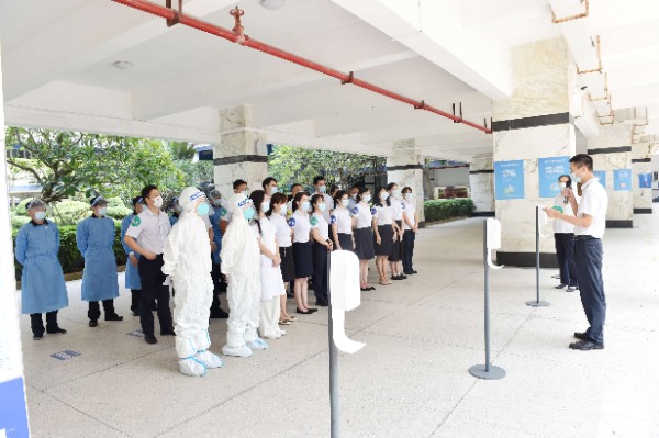 学生返校前,为保障各项工作的顺利进行,龙校长在中学部教职工大会上提出了具体的要求。她要求所有教职员工要严格落实校园疫情防控要求,引导学生共同守护校园安全;利用新生教育月,让七年级的新同学尽快了解实验、融入实验。她特别强调,要做好线上线下的教育教学工作的衔接,关注学生的状态,及时做出调整。办公室及时做好了师生返校前的审查工作,高标准完成上级部门对返校前准备工作的验收。教务处针对师生返校情况完成了课表的调整,召开学科主任会,确保学生返校教学工作有效开展。学生处组织班主任老师提前对班级教室进行了精心的布置,针对不同年级设计了返校第一节主题班会课。总务处组织物业对校园进行了消杀和各项安全检查,做好了学生在校用餐的准备工作。为保证每位师生的生命安全和身体健康,切实做好疫情防控应急处置工作,在防疫副校长的指导下,中学部积极组织教职员工开展了学生返校前应急处置演练工作。演练准备充分,流程清晰,职责明确,有序高效!