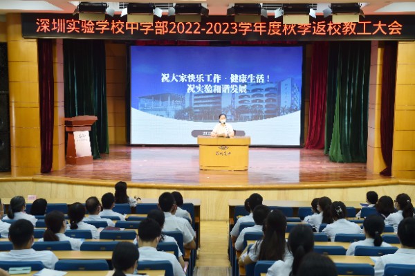2022年9月19日,根据上级教育行政部门工作要求,在全体教职员工、学生及家长的通力配合下,中学部三个年级的学生分批次顺利返校!早7时20分,深圳实验学校副校长、中学部执行校长龙萍带领行政领导干部在校门口热烈欢迎学生返回校园。老师们和学生互致问候,共同落实疫情防控要求,共抗疫情,同促教育发展,秩序井然。新学年新学期,久违的校园迎来了师生,充满了勃勃生机。