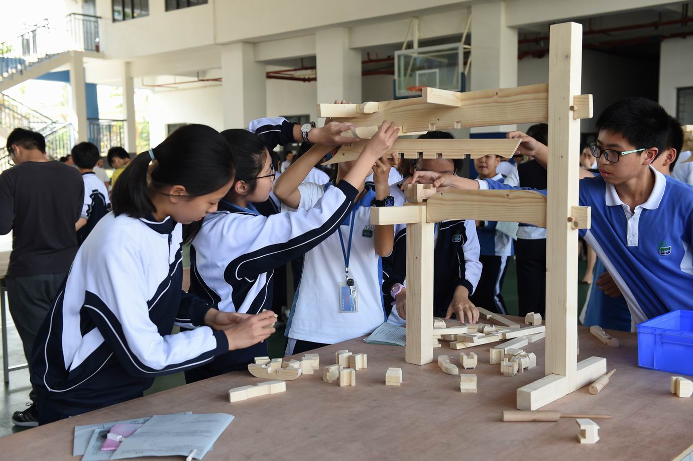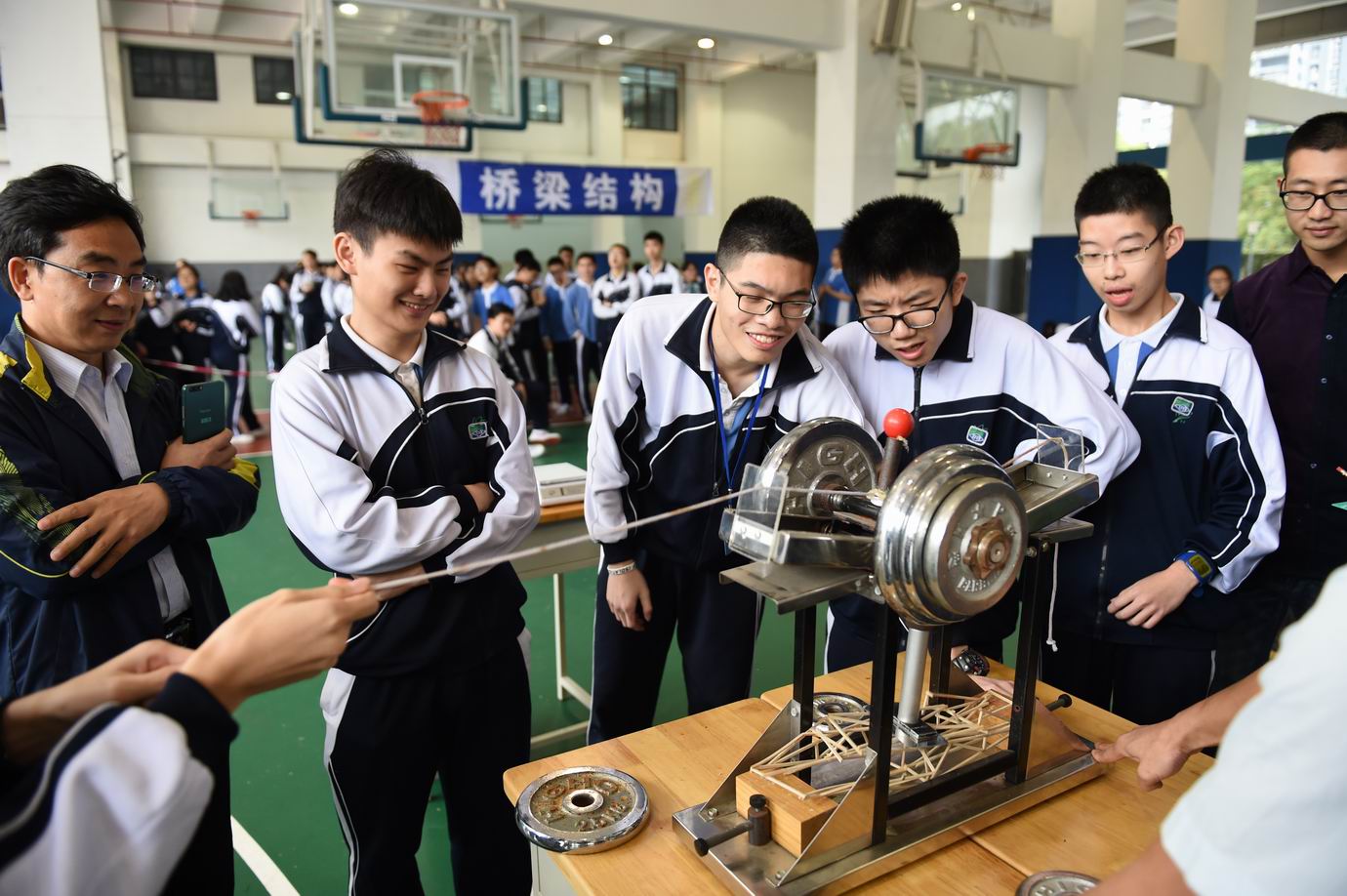 持续22届头脑奥林匹克运动会,在常规题“飞向天空、大力神、桥梁结构”基础上新增“飞越彩虹”“看谁飞得远”两个项目。学生现场动手,制作创意独特的纸飞机,凭借着弹簧的动力,在同学们激动的尖叫声和欢呼声中,看谁飞得更久。比赛让同学们锻炼了思考与动手能力,感受到了团队的力量,共享了集体的智慧,体验了科技的魅力。