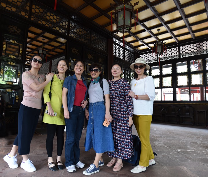 午饭之后,驱车来到第二站:清晖园。坐落在广东顺德市大良镇华盖里,是国内现存的一所著名的岭南园林。清晖园与东莞可园,番禺余荫山房,佛山梁园一起,被人称为岭南四大名园,它们代表了我国古典园林的重要一支。来到清晖园,老师们被眼前精致的景色所深深吸引,仔细了解人文历史之余,用相机频频记录着园林中的一山一水、一草一木。为了更好地欣赏园林之美,在出发前,高同宇老师特别以《诗情画意写进园林》为题,从美学、建筑学、文学等多角度,为老师们提供了宝贵的资料,使得本次活动更加有深度,内涵更加丰富。