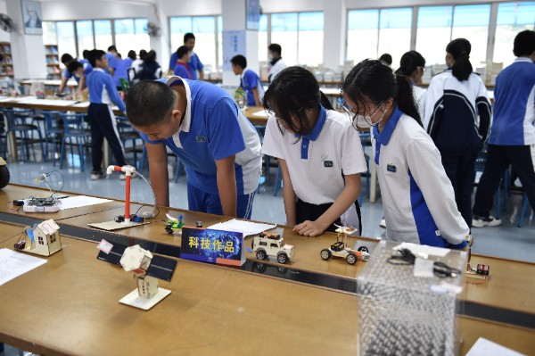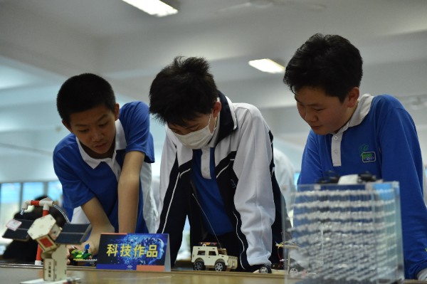 在本次活动中,同学们积极参与进行创作,共收到学生的小创客作品200多件,其中包括电子制作、创意制作、发明作品、科技活动方案和科学创意设计方案等,件件作品中创意飞扬,灵感闪现,凝聚了每位参赛者和指导者的辛苦劳动。学生的优秀作品被展出在中学部二楼阅览室。