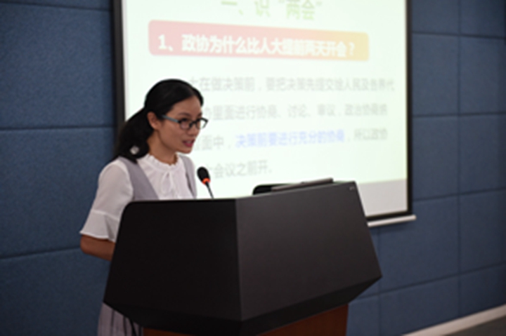 支部宣传委员罗贤珊老师给全体党员上了一堂别开生面的党课——《17(一起)看“两会”》。罗老师从“识两会”、“看报告”和“答记者问”三个方面深入浅出地解读“两会”。第一部分设置了四个有趣的通识问题,如政协为什么比人大提前两天开会?“议案”和“提案”有何不同?只要是代表就能提议案吗?政协委员里为什么那么多明星?党员同志听完讲解后豁然开朗。