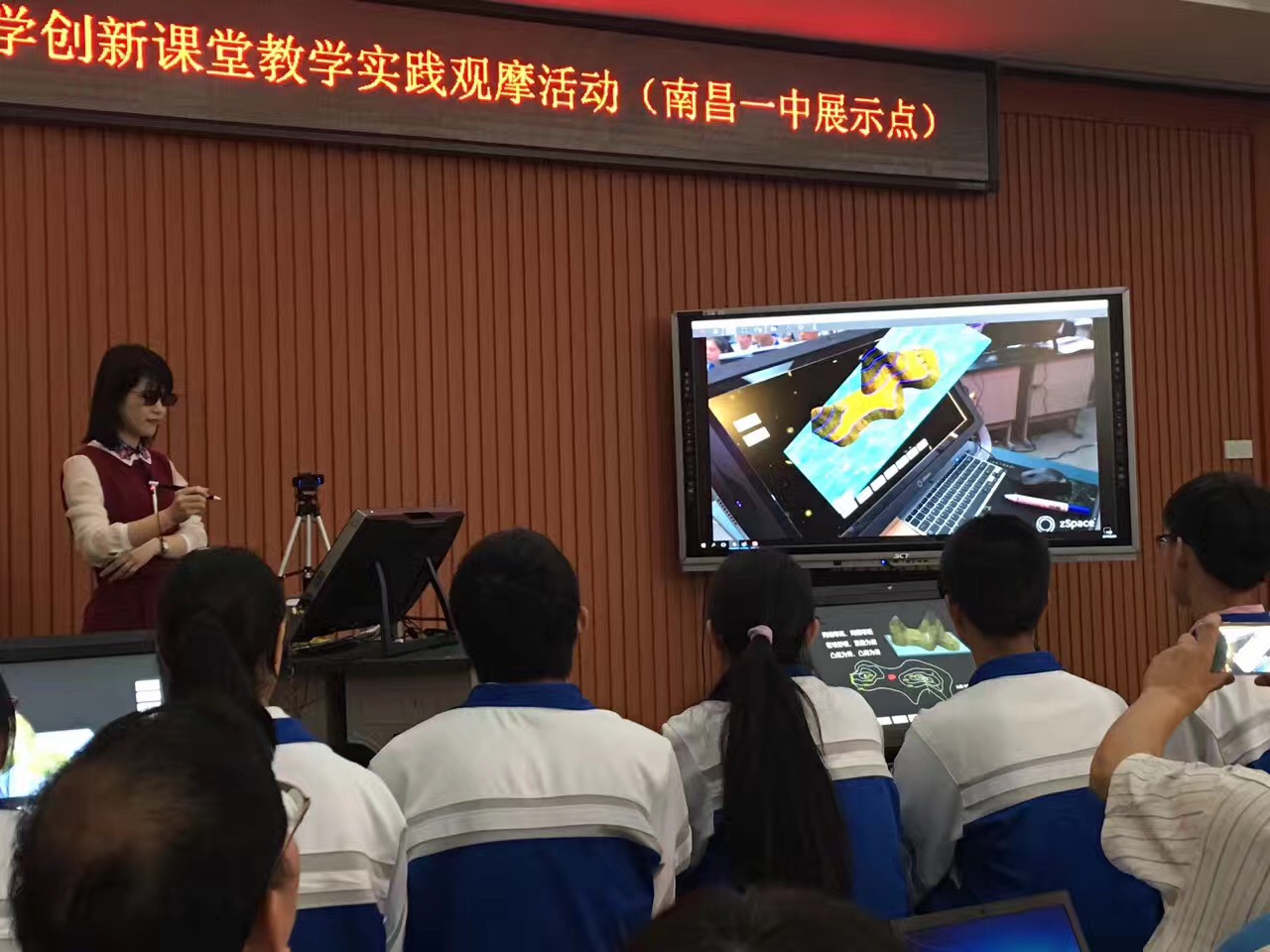 在广大教师积极参与、报送课例的基础的上,在全国报送的13520个有效课例当中,经专家遴选,产生了一批新媒体新技术支撑下的优秀课例,其中有306名来自全国的省市代表到南昌市进行现场上观摩课和说课。中学部杨洁兰老师以VR(虚拟现实)技术为支撑在南昌市第一中学上了一节《等高线地形图的判读》观摩课,获得了全国一等奖。