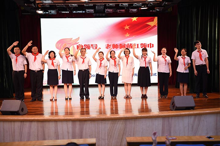 每一名少先队员的成长离不开老师们的辛勤培育和谆谆教诲,仪式上,少先队员们为陪伴他们成长的老师和校领导佩戴上鲜艳的红领巾,感谢老师们所倾注的爱与温暖。