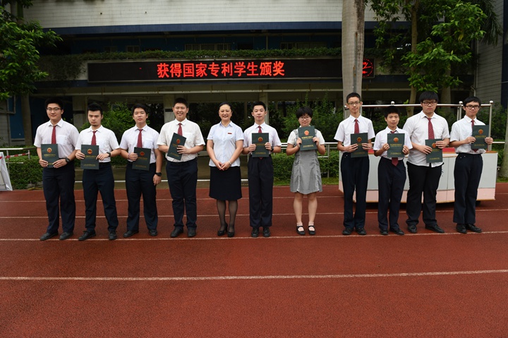 这些学生作品被推荐参加全国、省、市青少年科技创新大赛,获奖无数,再由教师帮助申请国家专利,让学生获得满满的成就感和自信心。到目前为止,学生已收到国家知识产权局专利局的五批《授权通知书》,共获得112项国家专利。周一晨会上,学校为第五批获得专利的10位同学举行了证书颁发仪式。(文/教务处 图/电教室)