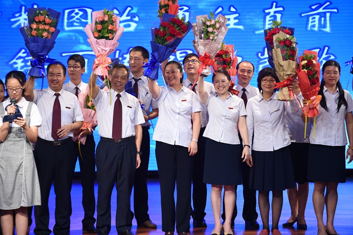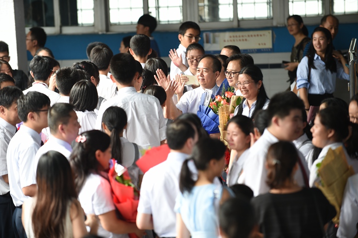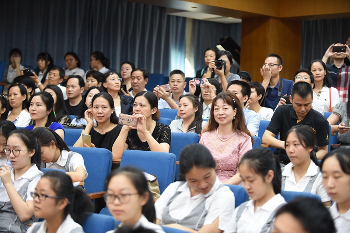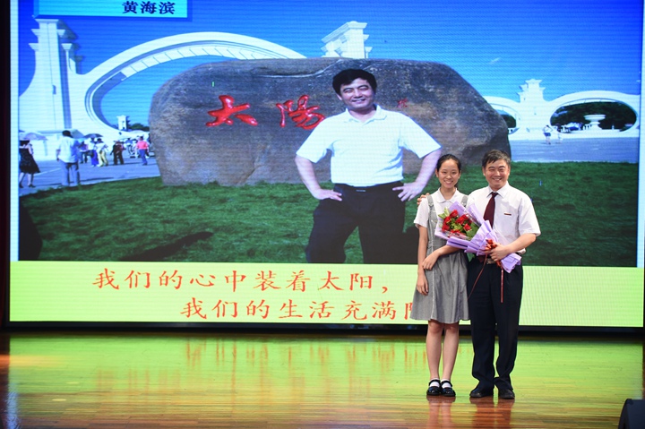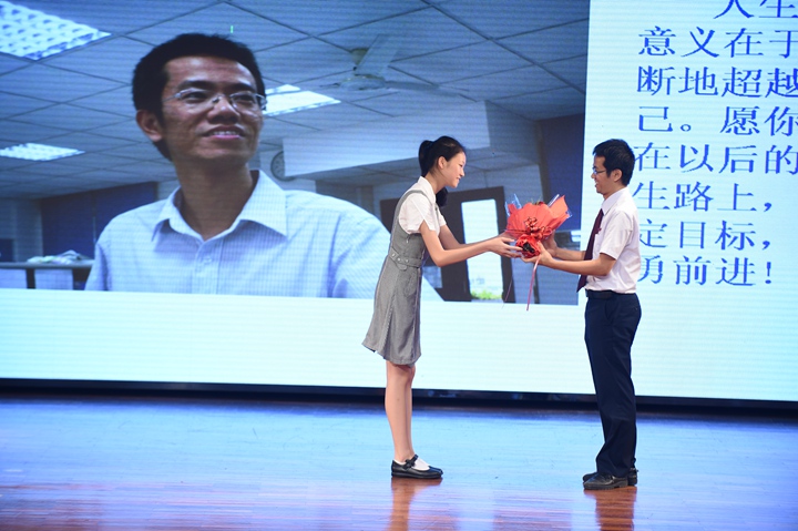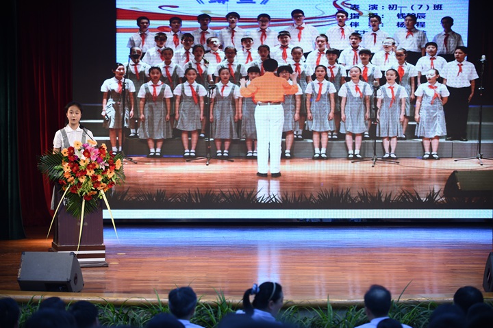 难忘恩师,学生代表向学校领导和全体初三老师献上鲜花,表达对学校和恩师的感激之情。典礼在校歌青春的旋律中圆满结束。