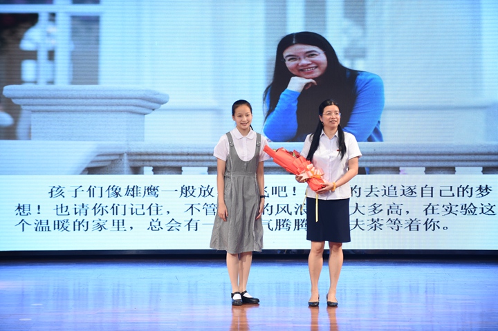 今天,我们经历了三年的磨砺考验;今天,我们迎来了毕业的时刻,扬帆起航,乘风破浪,就在今天。随着王兵主任、杨光主任依次宣读毕业生决定、优秀毕业生表彰决定,会场中弥漫的情怀,便在怀旧与抒情之际又增添了一份庄严与自豪。各班代表从龙校长手中郑重接过鲜红的毕业证,稚气已脱的面孔上,洋溢着自信和对未来的期望。年级64名优秀毕业生,在饱尝收获与幸福的同时,愈发坚定了继续传承实验品质、做一名优秀的实验人的信念——继往开来,励精图治,不断进取,永不满足。