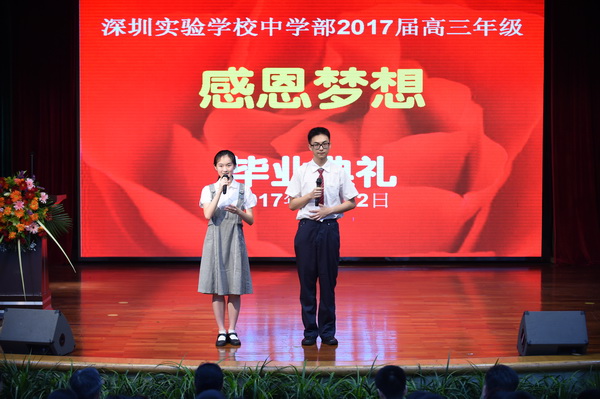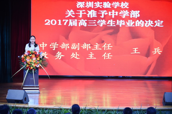 2017年6月12日下午,深圳实验学校中学部高三年级毕业典礼在中学部五楼小礼堂召开。龙校长、部分干部、学生家长以及高三全体师生参加了毕业典礼。