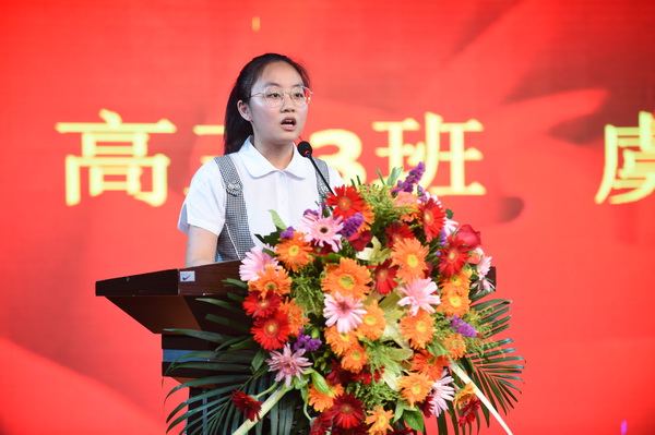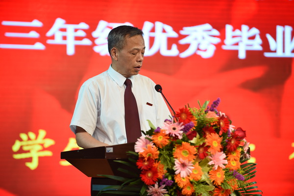 龙校长代表学校致辞。龙校长在致辞中首先向全体高三同学致以热烈的祝贺;寄语同学:感恩——感恩家长、老师,还有学校!记住:只有心怀感恩的人,才能成就更好的人生。羡慕——对18岁的同学们羡慕不已。这个年龄,是特有的资本,它充满了机遇,有无限可能在等待着你们。记住:坚持应该坚持的,放弃应该放弃的,趁还年轻!自强——高中毕业后,就将独自进行全新的生命体验,带着思考去更高层次地探求生命的价值与意义。记住:必须有智慧的头脑、丰富的学识、强健的体魄、要有责任、有担当要奋力拼搏。责任——将成为一个社会的人,要不断完善、不断丰富、不断提升自己,人生的不同阶段有不同的精彩。记住:回报父母、报效国家,这是同学们未来的责任所在,完成了这样的使命你的人生更加充满光辉。珍惜——珍惜时间、友情、平安、健康……记住,最值得珍惜的是生命,要以敬畏之心,善待生命,呵护生命。因为,一个人的晟敏不仅属于他自己,还属于他的家庭、所在集体、更属于社会!从容——人的一生,伴随着喜怒哀乐悲恐惊等不同的情绪,这,就需要我们有效地把控情绪,心绪平稳地面对各种状况,才能更好地做出决策,更从容地解决问题。记住:经过10多天的期待、焦虑、煎熬,高考成绩出来,无论什么状况,都要从容面对。祝福同学们:凭着青春的热血,走的更高、飞的更远!祝福同学们有美好幸福的人生!
