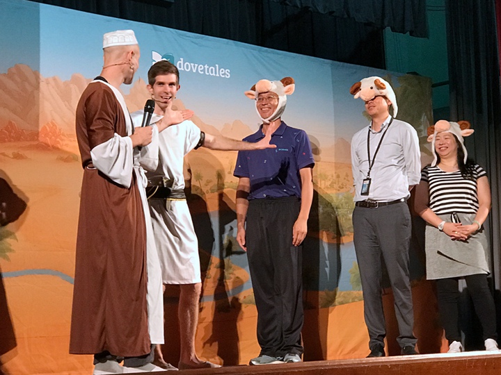 随后,我们观摩英语课本剧表演。英文话剧《David and Goliath》来自圣经的著名篇目,四个外籍演员把一篇简单的故事演得如此跌宕起伏让人敬佩。我们也表演了英语歌唱节目《Counting Stars》。千言万语汇作一首歌,中学部初一同学的动情演绎赢得台下阵阵掌声。