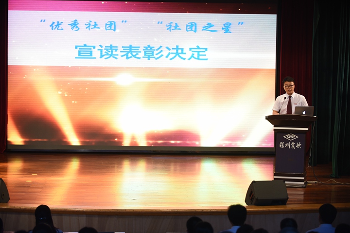 大会首先由牛志强团委书记宣读上学期优秀社团及优秀社员表彰名单;教务处主任王兵主任、徐少云副主任、学生处王果然副主任依次为获奖的优秀集体及个人颁奖。学校希望同学们积极参与社团活动,提升自我管理能力和活动能力,为丰富校园生活、创建精品社团而不断努力。
