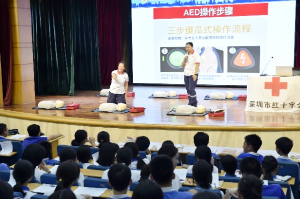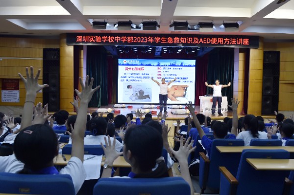 为进一步丰富学生应急救护知识,增强学生在日常生活中自救互救的意识和能力,2023年10月13日,中学部联合深圳市急救中心邀请到深圳市红十字会导师、应急第一响应人导师王杰利老师在五楼小礼堂开展应急救护知识及AED使用方法讲座,七年级、八年级学生代表参加。